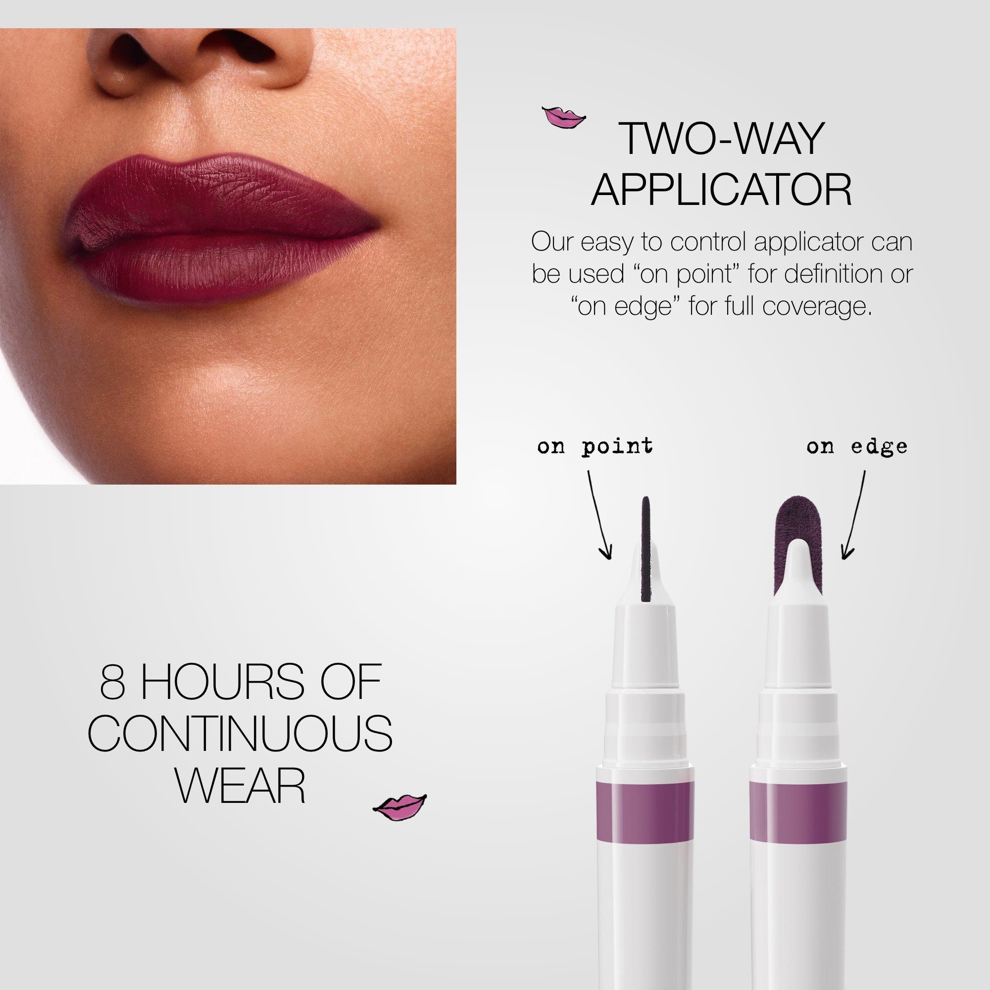 Exfoliate lips prior to use. Using both pressure and application angle, apply ''on point'' to line, contour, and define your lips, or ''on edge'' for full coverage and even color distribution. Store tip side down or horizontally for best performance.