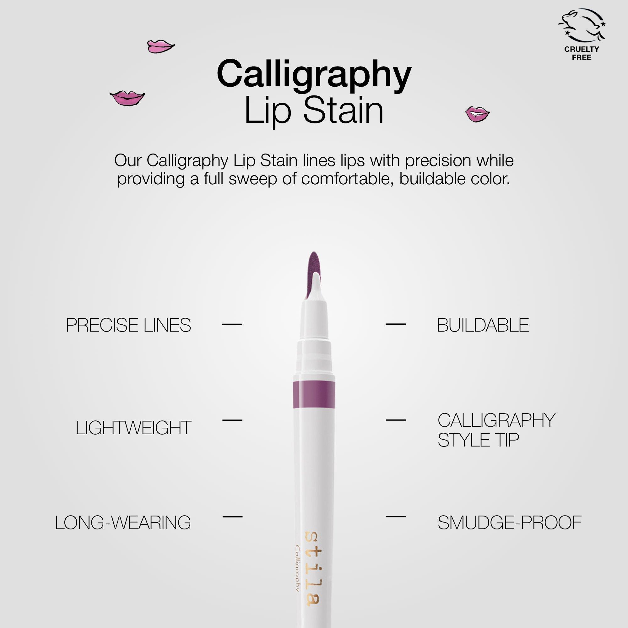 Stila's Calligraphy Lip Stain is a revolutionary, double-duty lip stain that lines lips with precision while providing a full sweep of soft buildable color.
