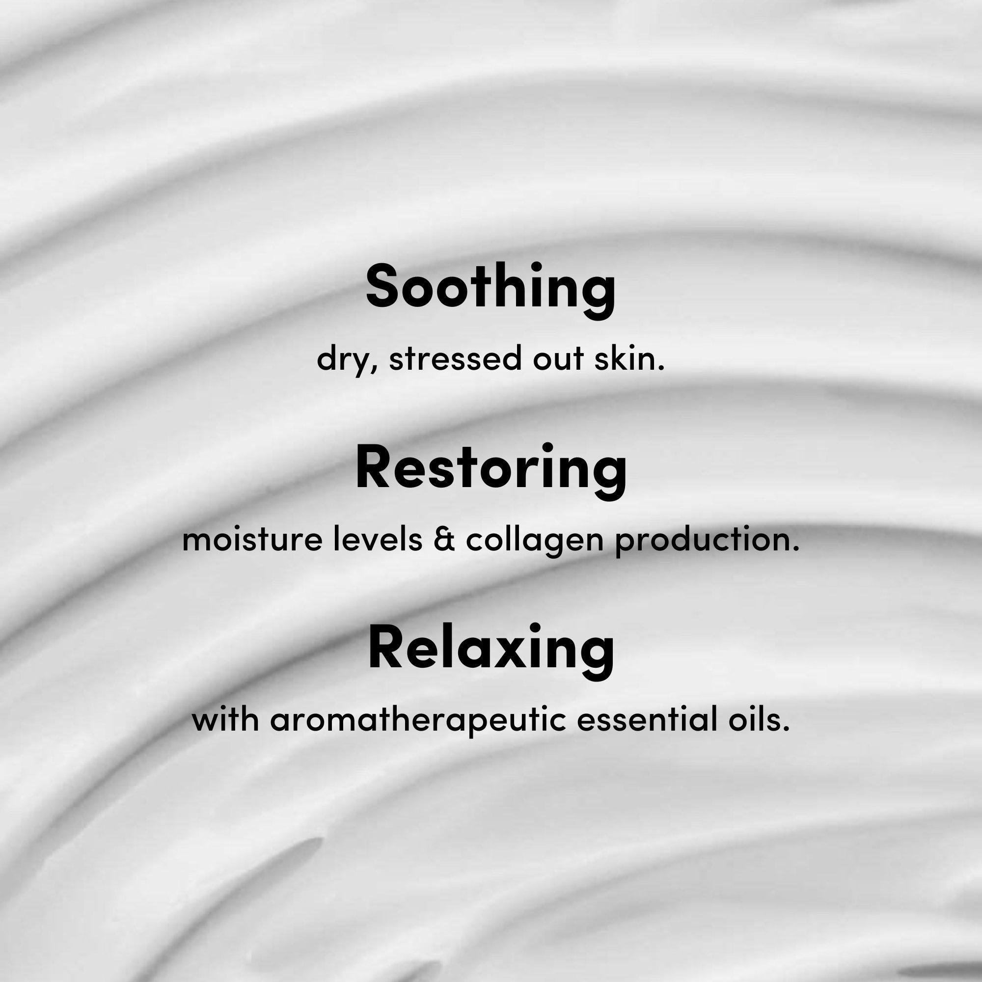 • Rich, creamy texture that feels comforting without being greasy, making it suitable for all skin types.