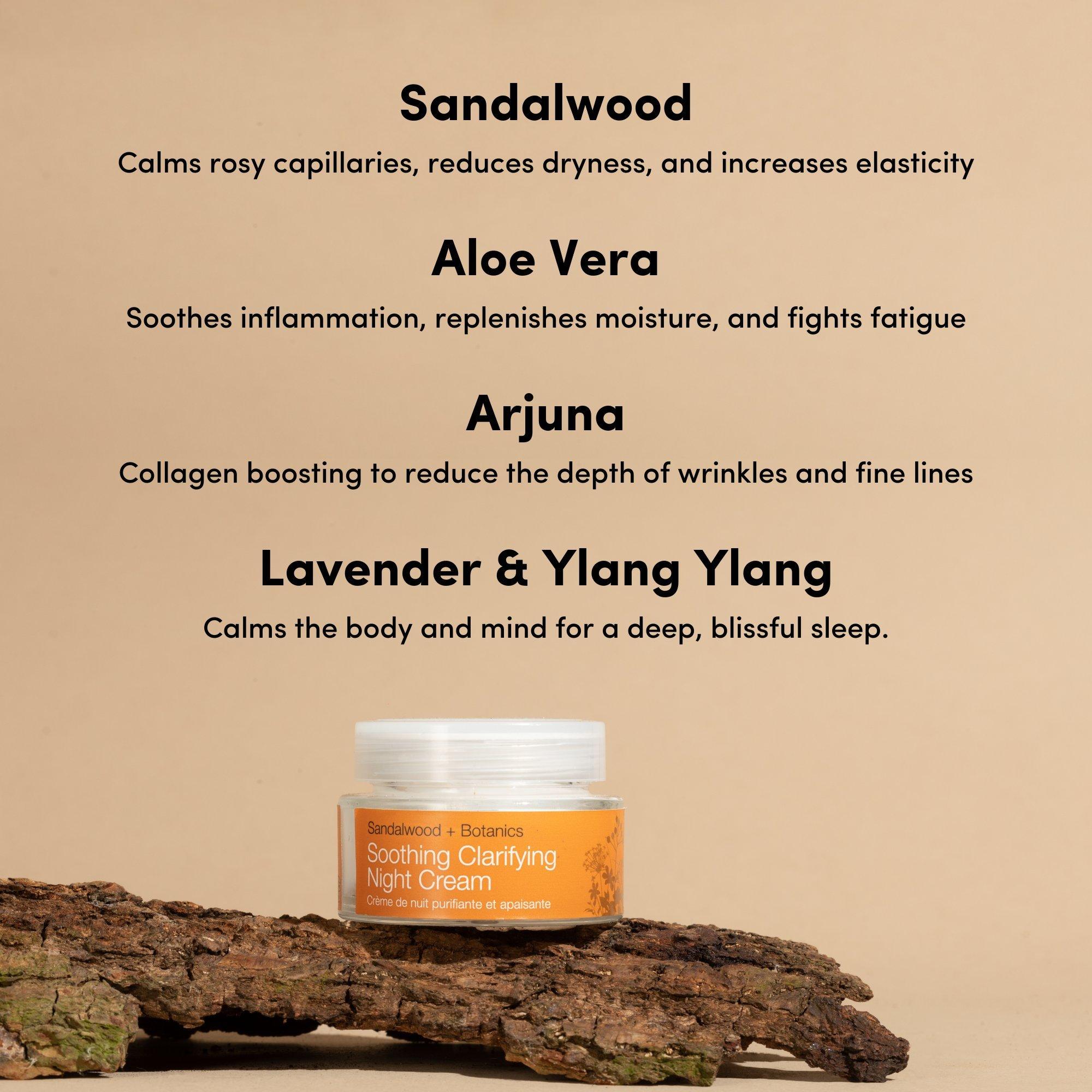 • Sandalwood (Santalum Spicata) Oil - Woody and balmy, soothes and calms irritated or sensitive skin.