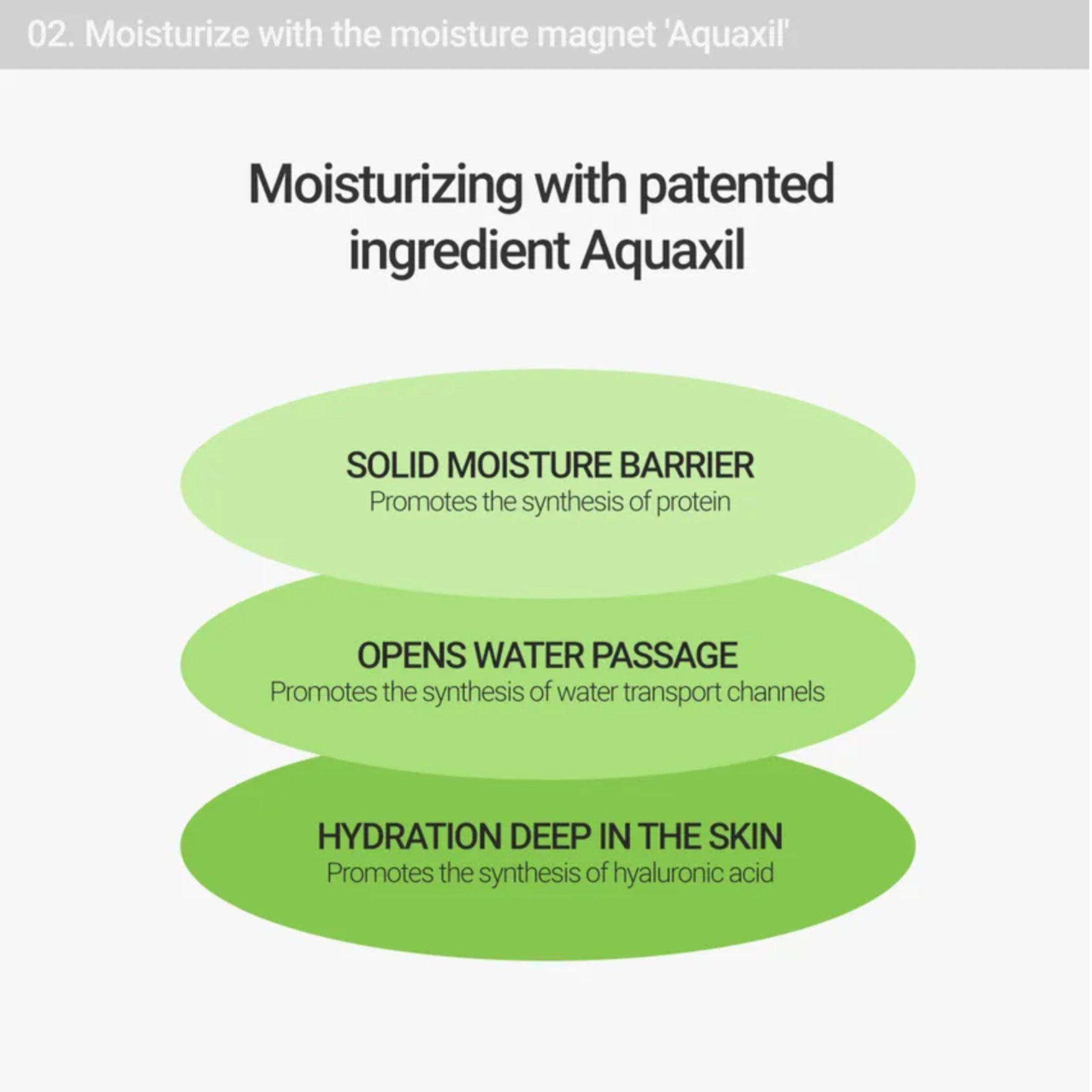 • Aquaxyl: Prevents moisture loss by building a firm and healthy moisture barrier