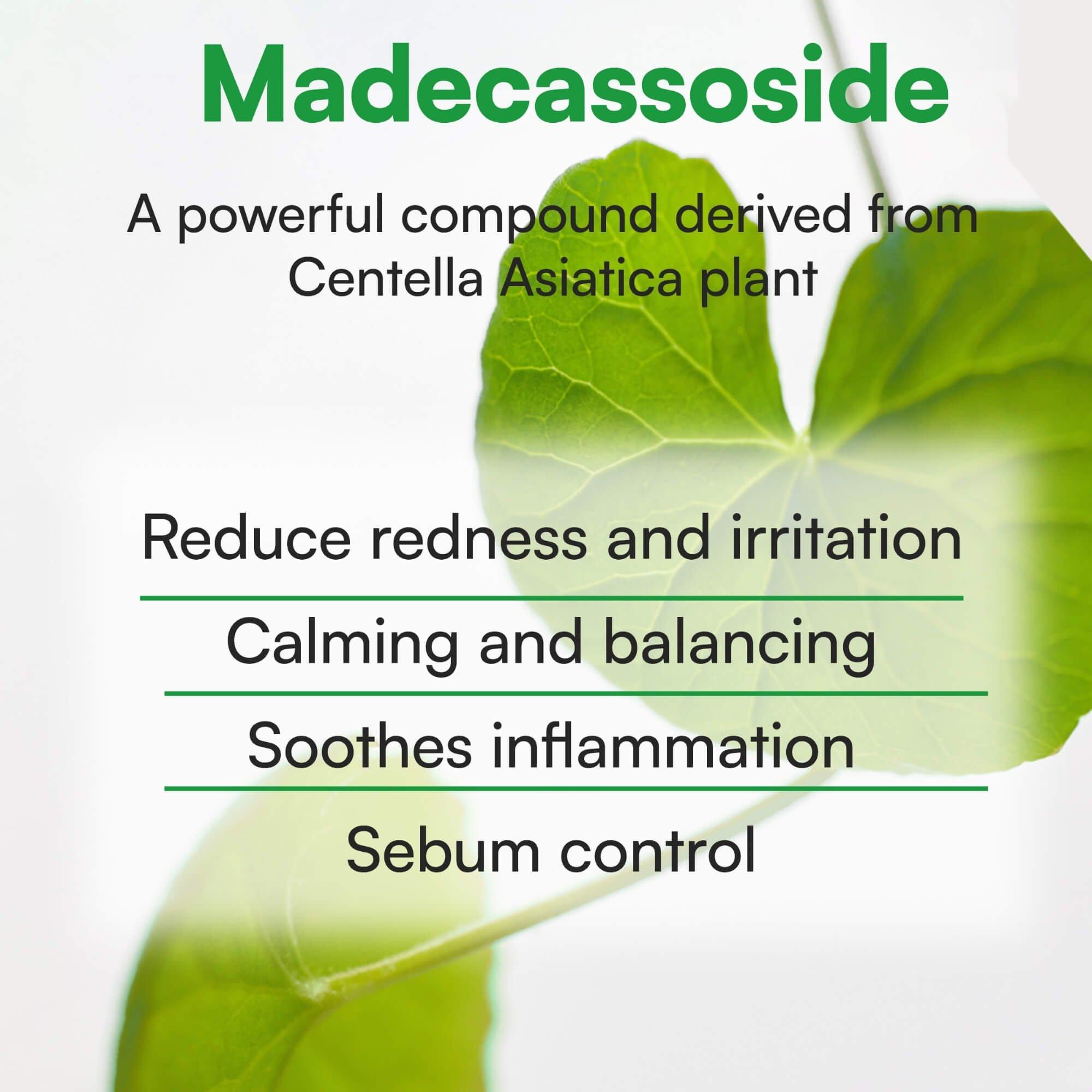 Lightweight serum with Madecassoside, Tea Tree, and Niacinamide that soothes irritation, controls excess sebum, and refines texture. Hydrating and calming formula helps reduce redness and leaves blemish-prone skin balanced, soft, and refreshed.