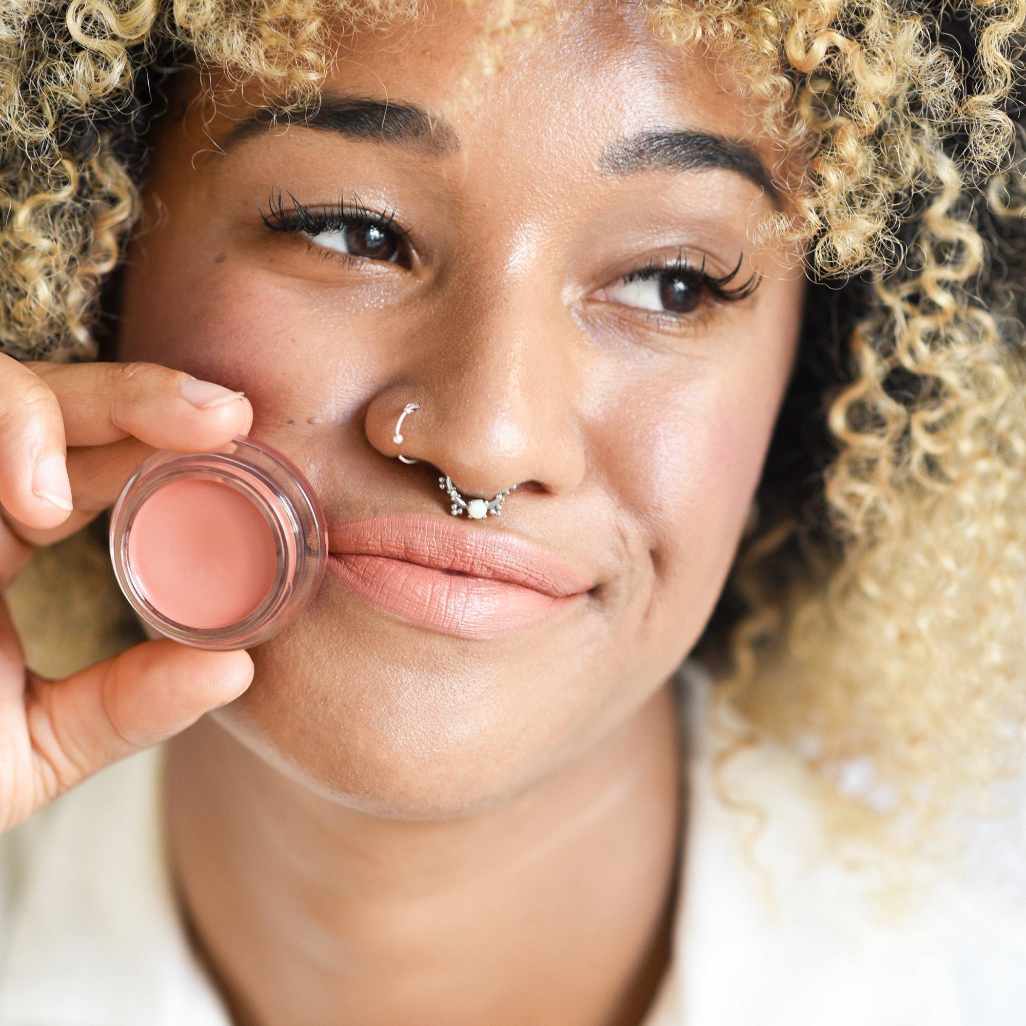 Apply balm with a brush directly to the cheeks, gently dab the formula on cheeks making sure to blend the edges blending as little or as much as you like. Repeat for deeper color.