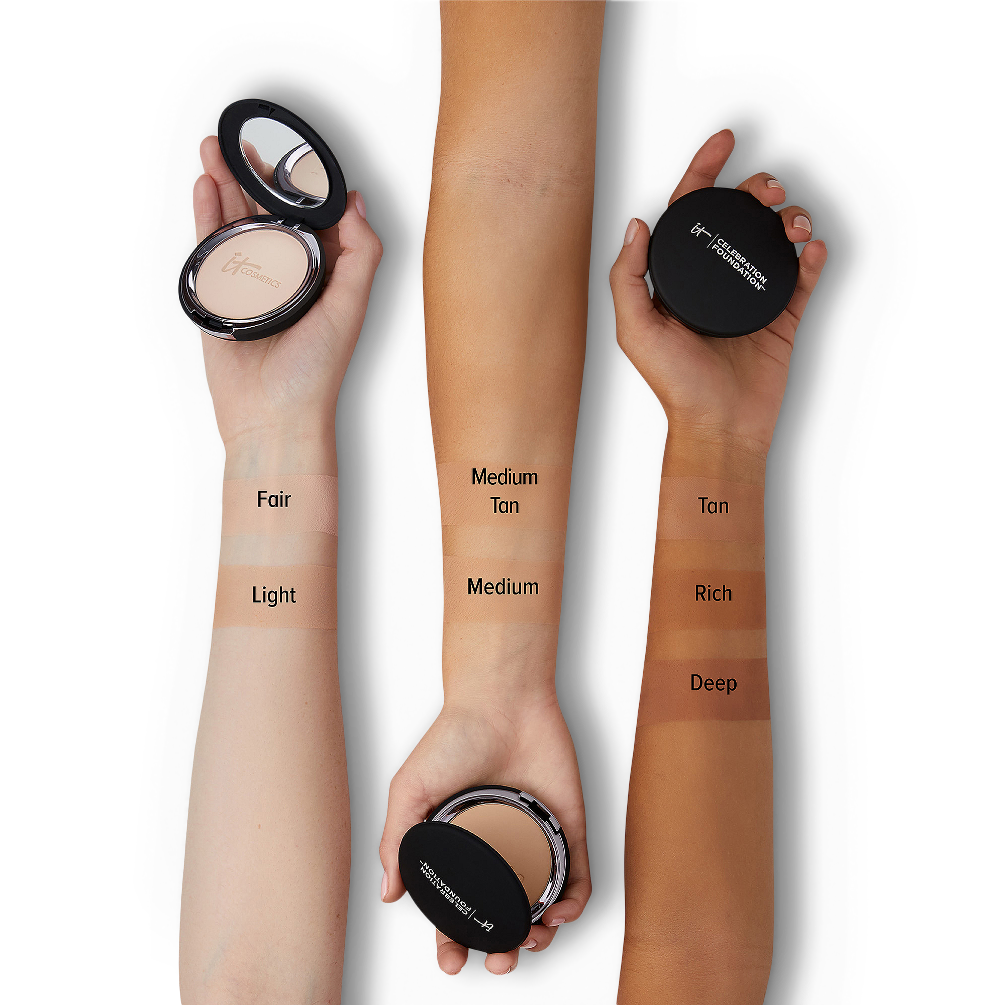 Celebration Foundation by IT Cosmetics is a hydrating face makeup powder that delivers highly pigmented full coverage and blurs imperfections without creases or cracks.