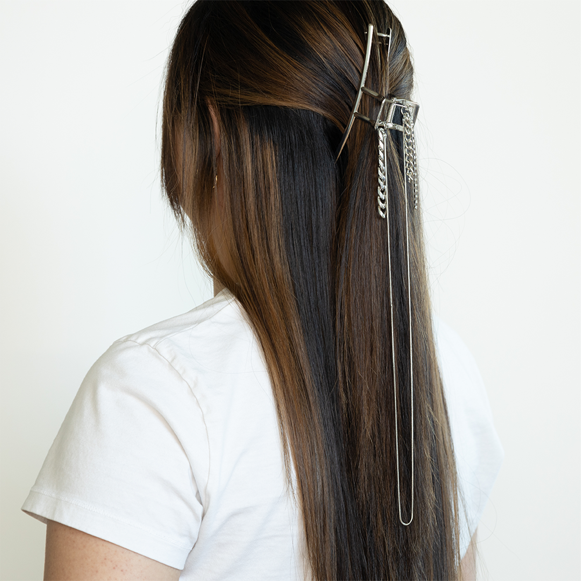 Express yourself and elevate your updos, half-updos, french twists, and more with INH's trendy Chain Claw Clip. Effortless yet playful, this premium quality claw clip will be the perfect match for all your outfits!