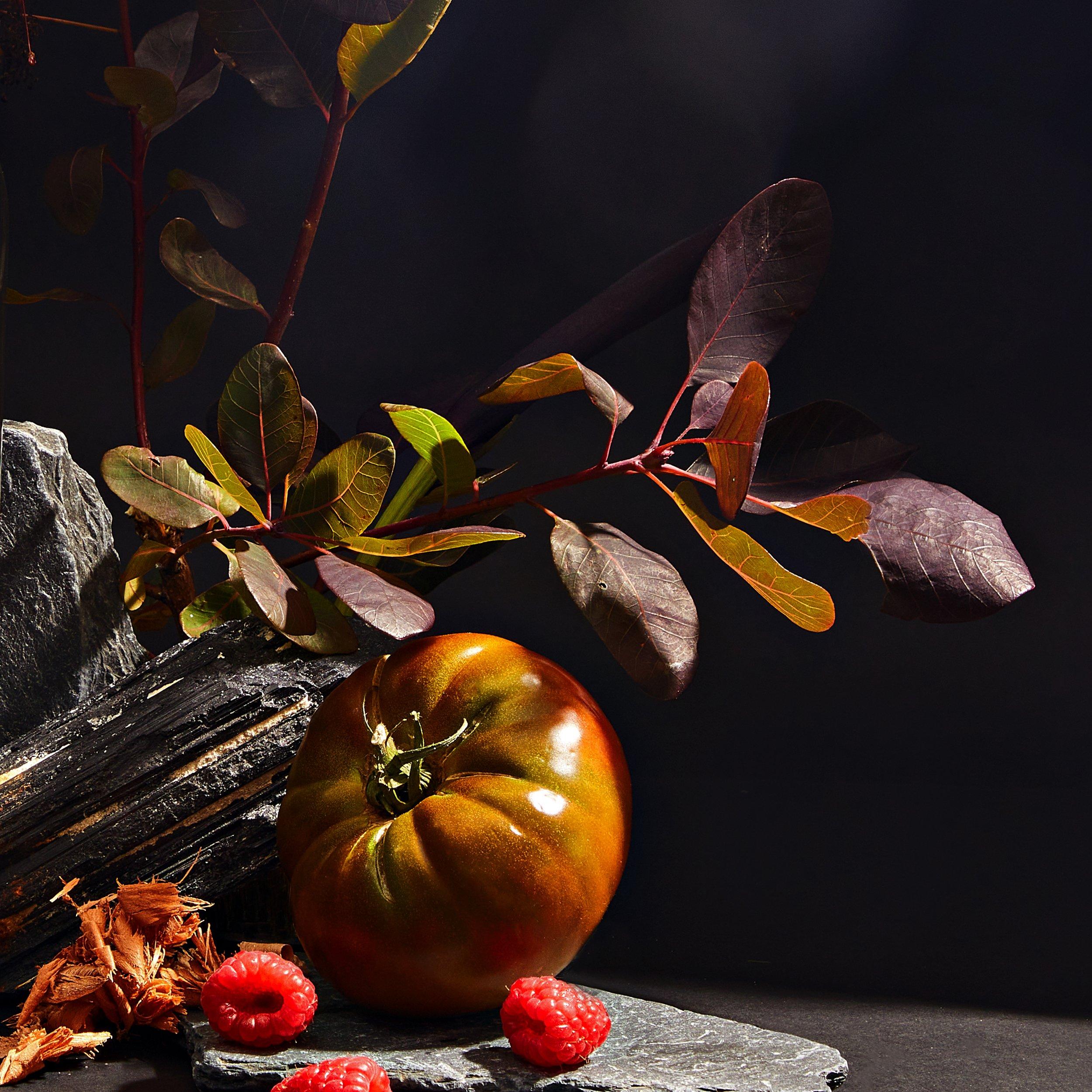 • Top: Burnt Maple, Raspberry, Unripened Tomato Skin