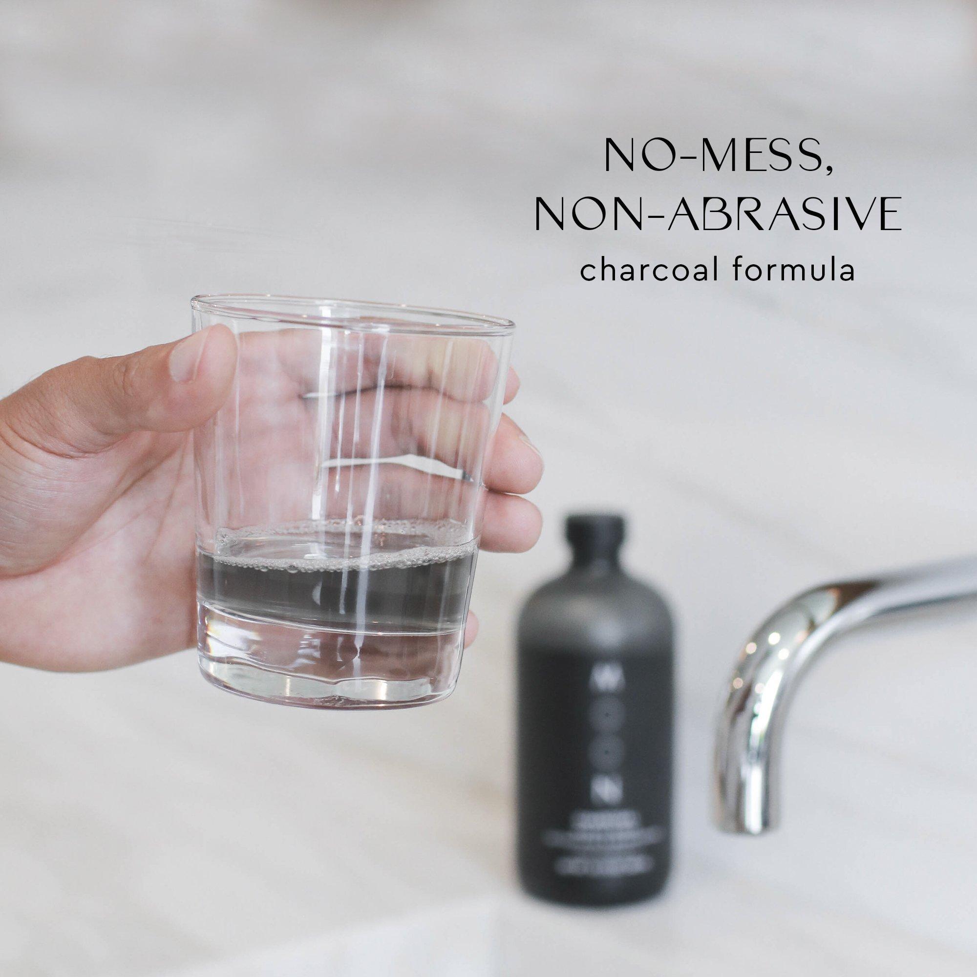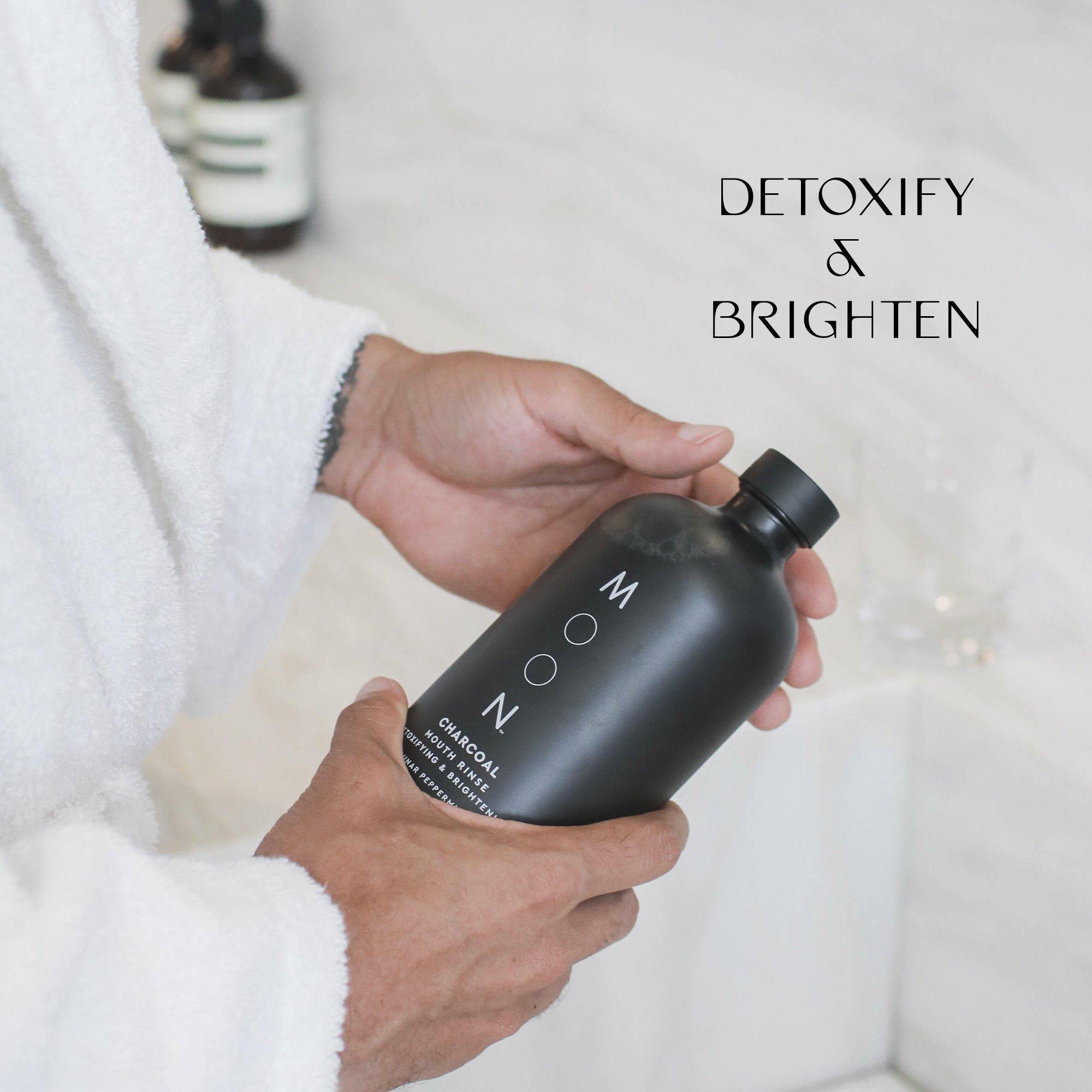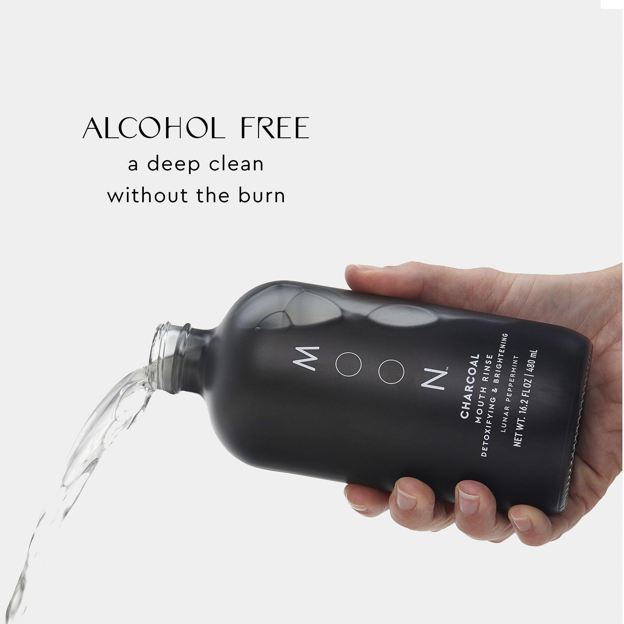 No burn. No mess. Moon Oral Beauty's Alcohol-free Charcoal Mouth Rinse detoxifies and brightens your smile. In new sustainable-friendly, reusable glass bottle. Refills sold separately.