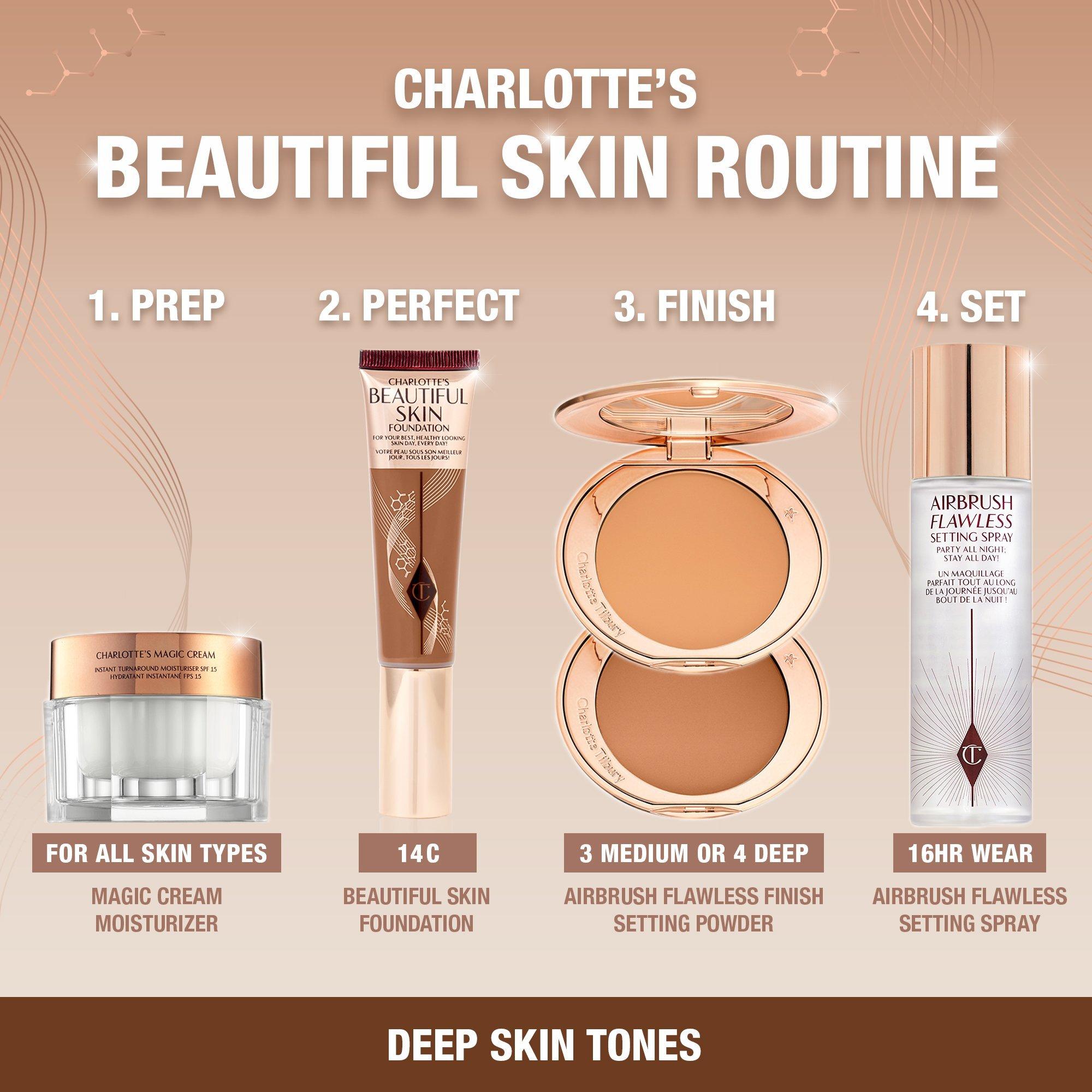Charlotte's Beautiful Skin Foundation is a 16 hour natural glow foundation with buildable to medium coverage. This foundation hydrates, smoothes, blurs pores and brightens skin.