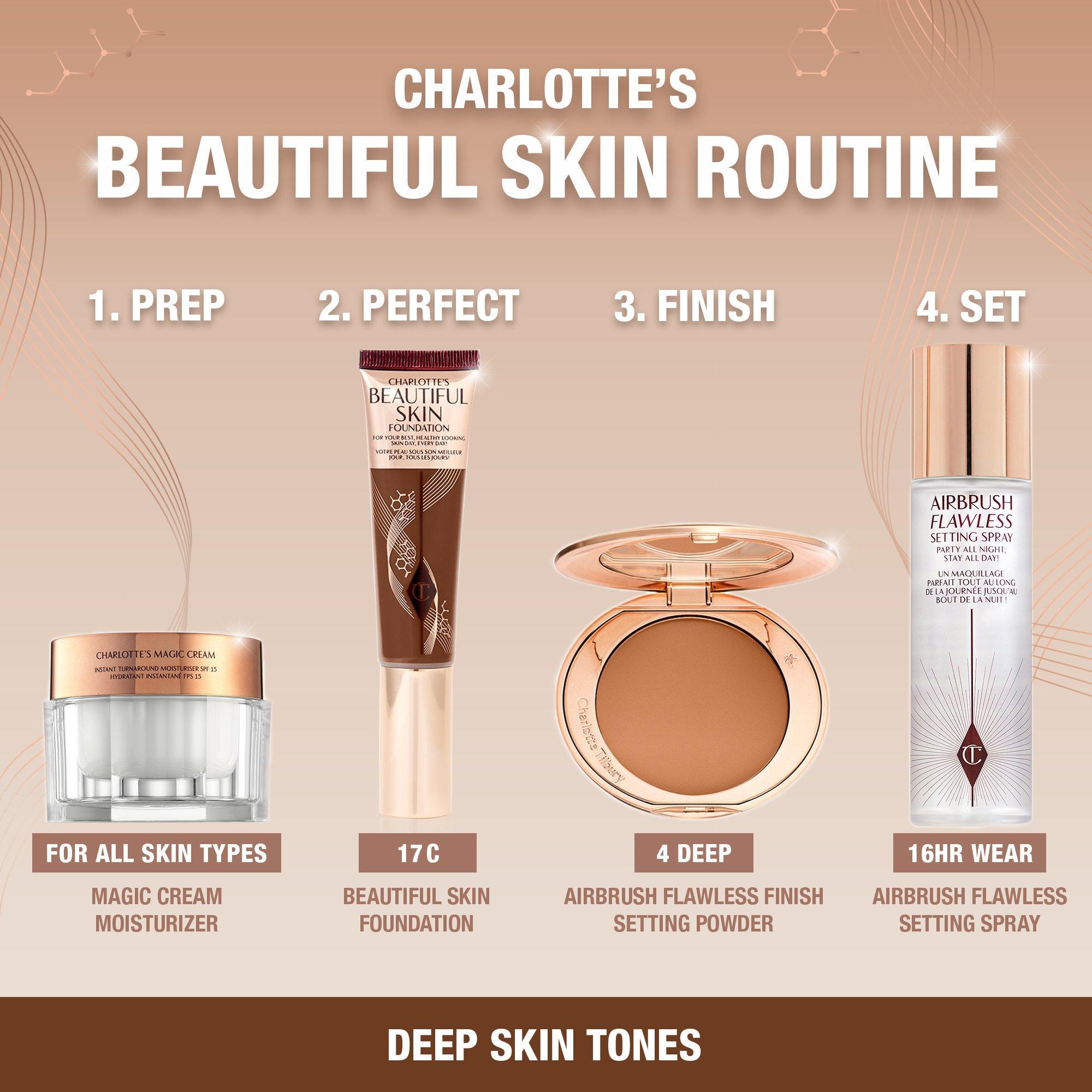 Charlotte's Beautiful Skin Foundation is a 16 hour natural glow foundation with buildable to medium coverage. This foundation hydrates, smoothes, blurs pores and brightens skin.