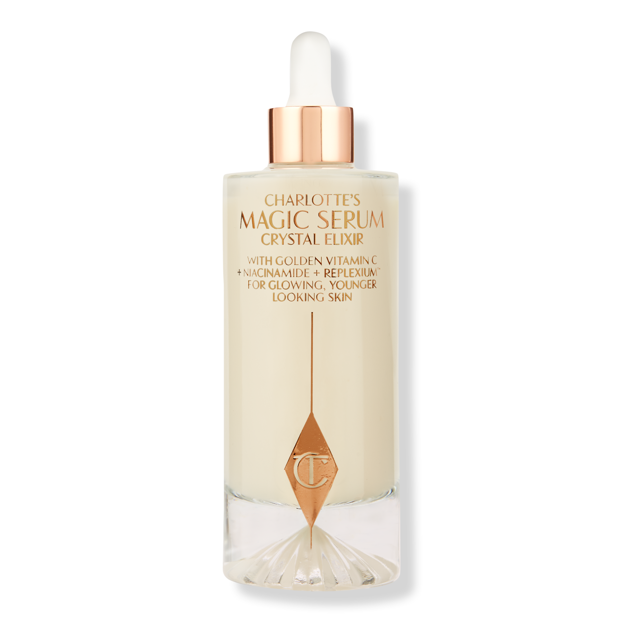 Charlotte Tilbury's Magic Serum with Vitamin C is a Vitamin C and Polyglutamic Acid anti-aging serum that reduces appearance of dark spots, fine lines and wrinkles, visibly brightens, and plumps skin for flawless makeup application.