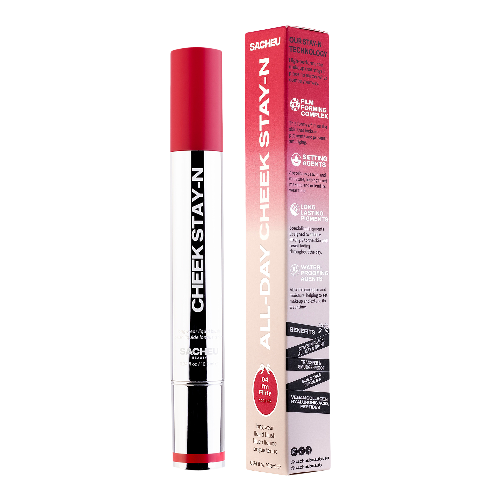 The SACHEU Beauty CHEEK STAY-N All-Day Liquid Blush is a long-lasting liquid blush that is ultra-blendable and buildable, providing a healthy flush with a dewy finish. Packed with skin-loving ingredients that help condition the skin.