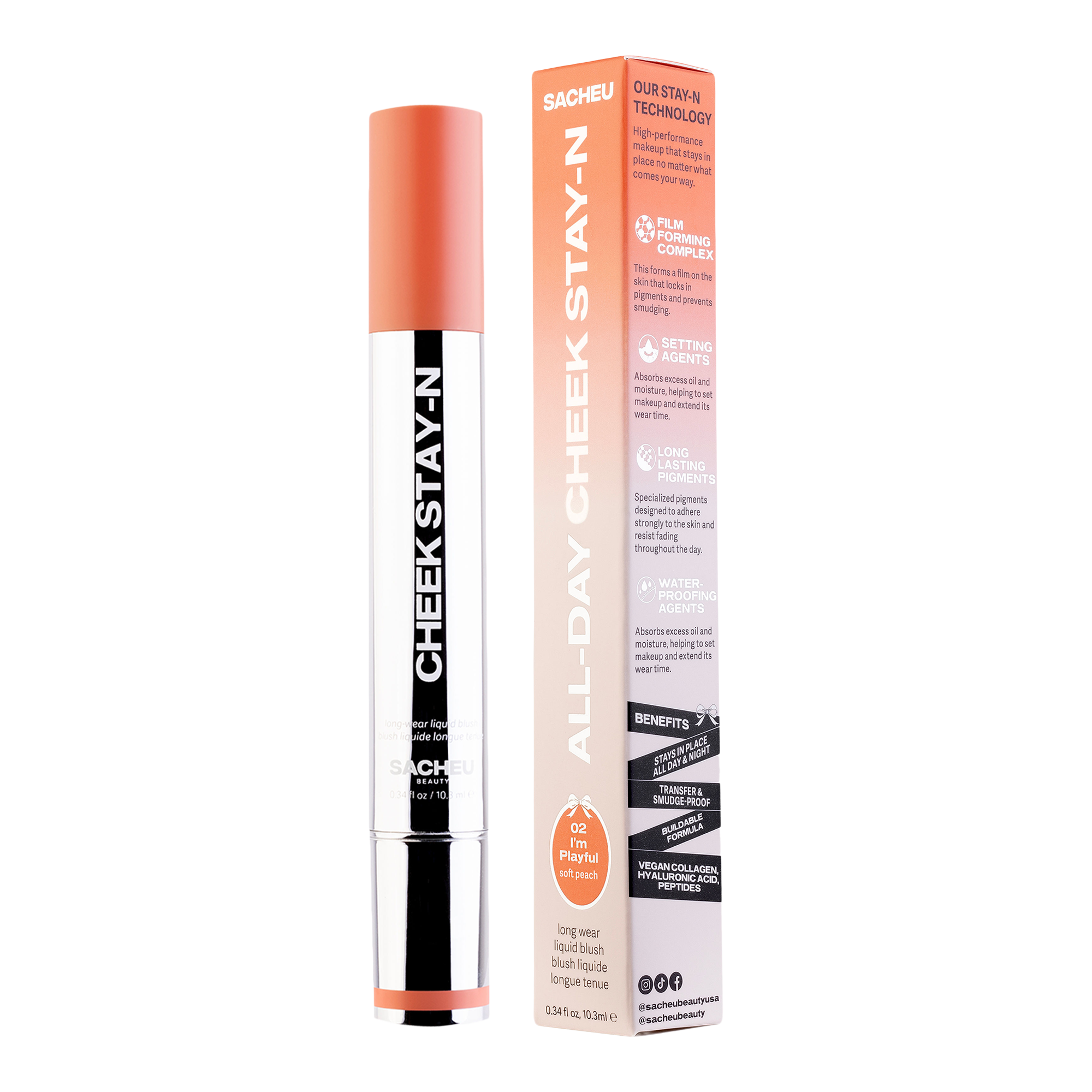 The SACHEU Beauty CHEEK STAY-N All-Day Liquid Blush is a long-lasting liquid blush that is ultra-blendable and buildable, providing a healthy flush with a dewy finish. Packed with skin-loving ingredients that help condition the skin.