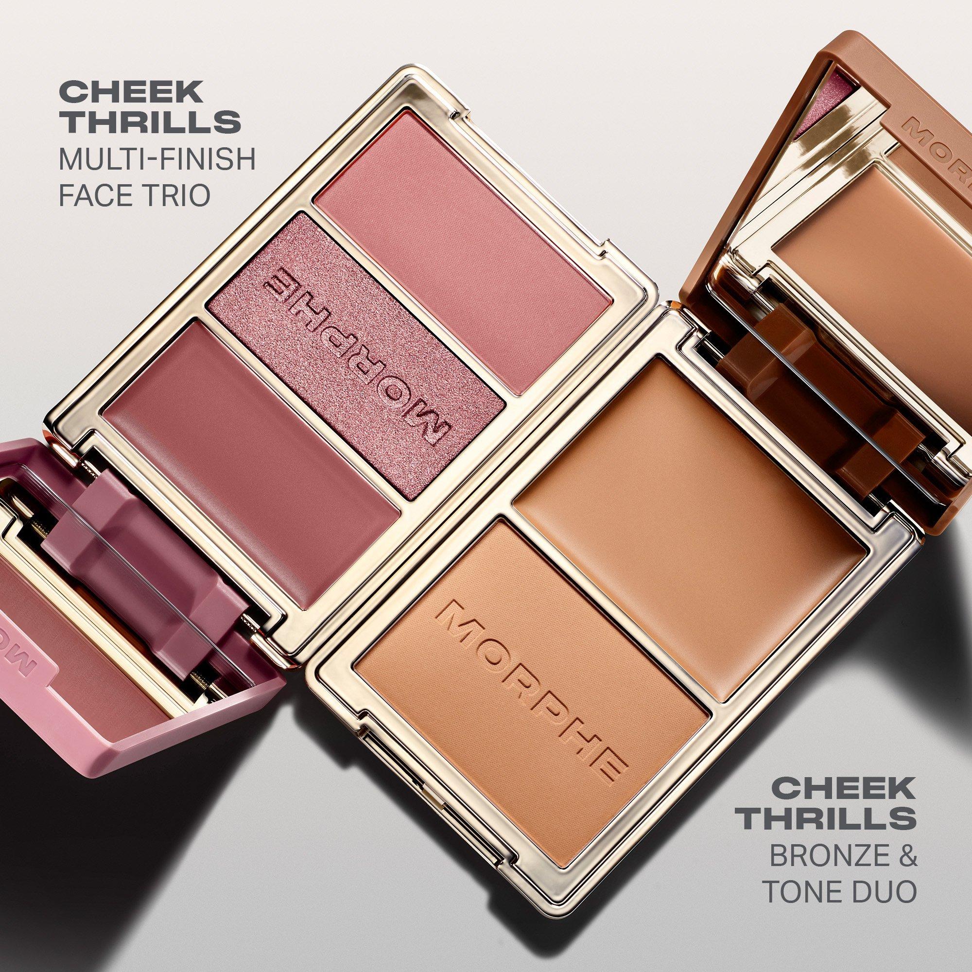 Capture how skin looks in life's most thrilling moments with Morphe's Cheek Thrills Multi-Finish Face Trio, featuring three textures: a satin cream, a luminous balm, and a velvet powder in monochromatic tones. Mix and match for custom colors, effects, and finishes.