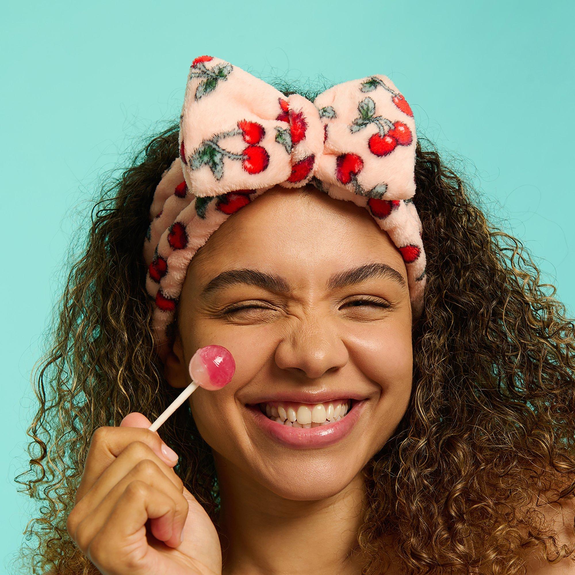Add a playful twist to your pampering routine with the Cherry Make-Up Headband from The Vintage Cosmetic Company. Designed in a whimsical cherry print, this headband comfortably keeps hair away from the face during skincare routines or applying make-up.