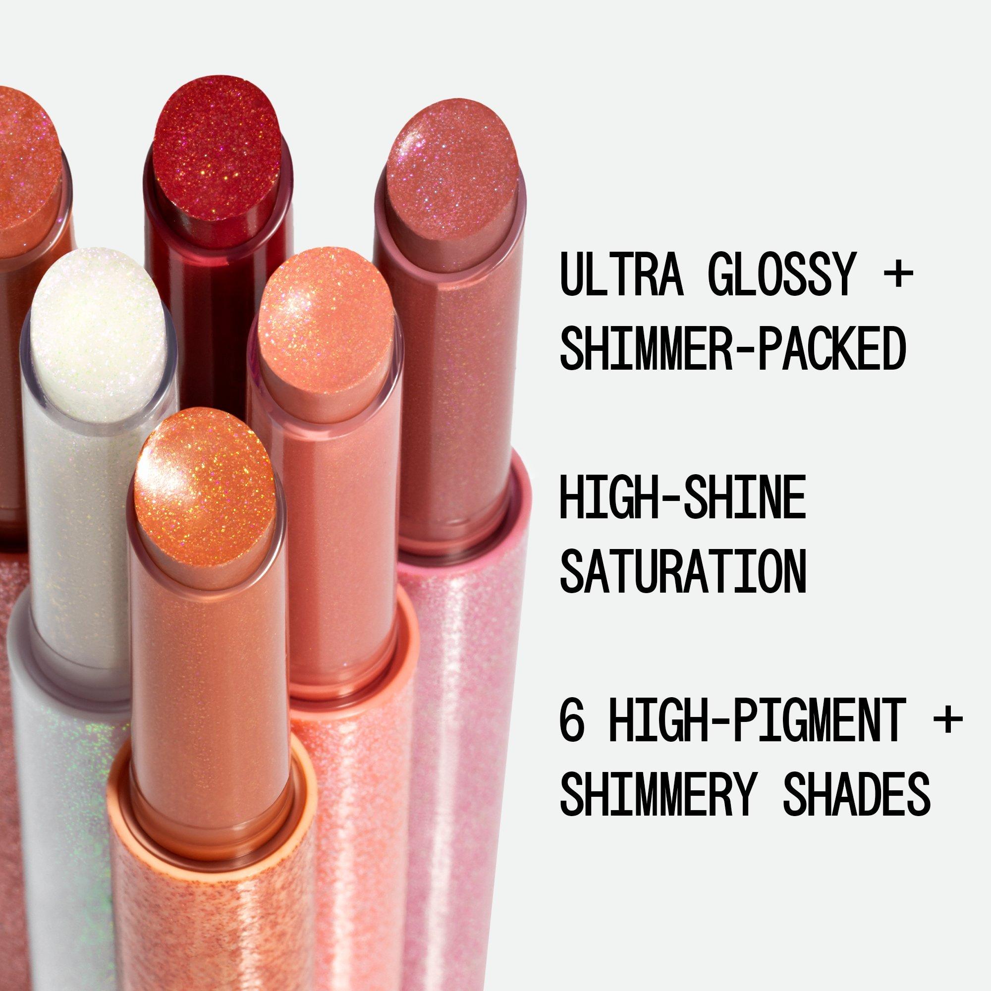 This about-face Cherry Pick Lip Shimmer is an ultra-glossy balm that melts into lips for a nourishing feel + high-pigment shimmer.