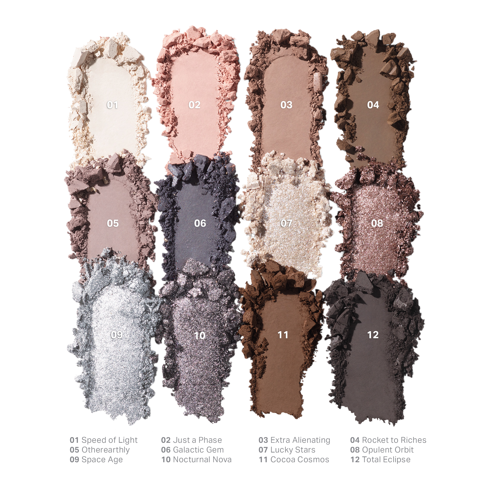 Layer different shade finishes to create depth; blend mattes to build your base, press shimmers onto the centers of your lids or inner eye corners for brightness, and top with metallics for a high-impact finish.