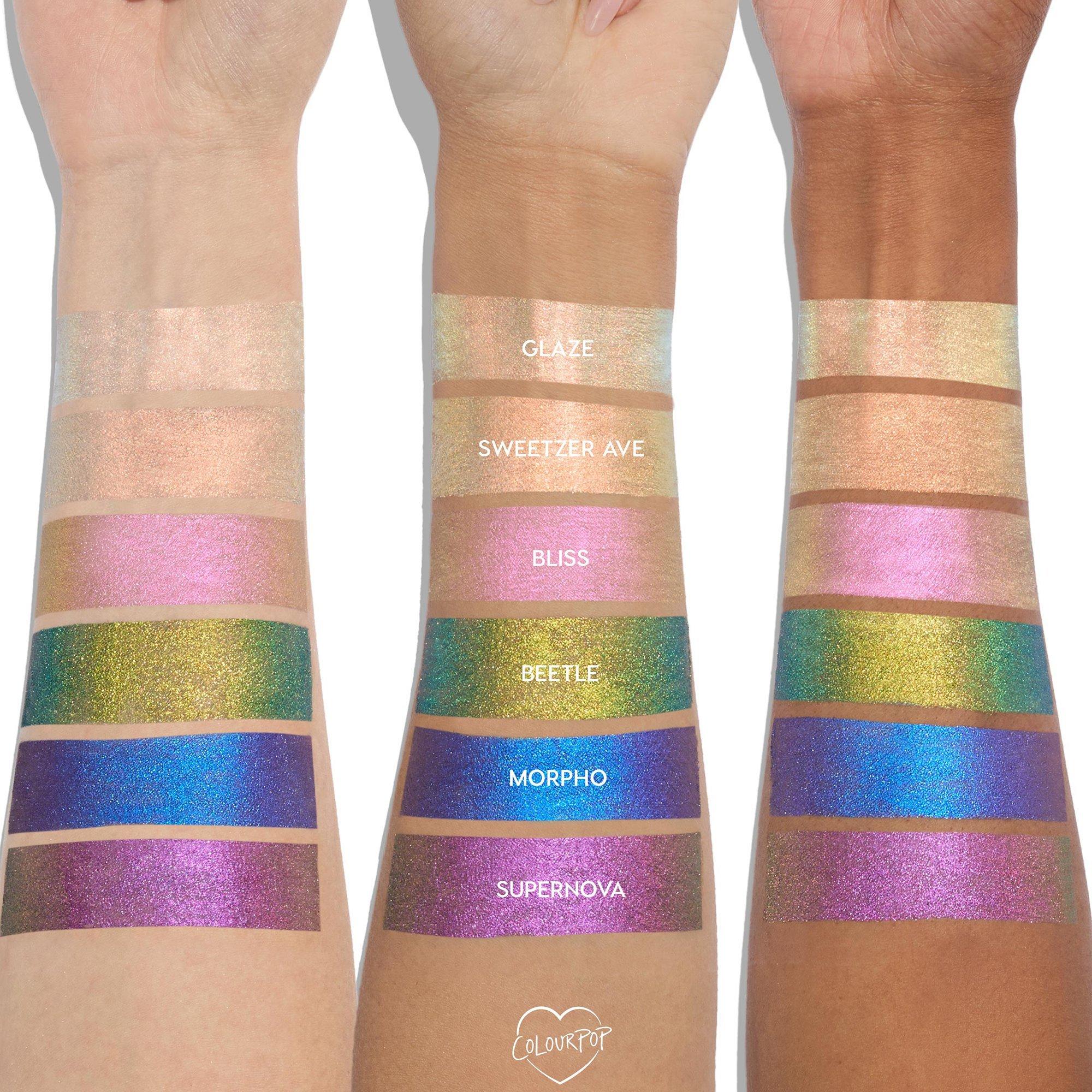 ColourPop's Chrome Liquid Eyeshadow is packed with sparkling multichrome pigment and ultra-reflective pearls for a high impact, multi-dimensional finish. Each unique shade delivers a vibrant color shift with every angle of light for a mesmerizing multi-layered look in just one swipe!