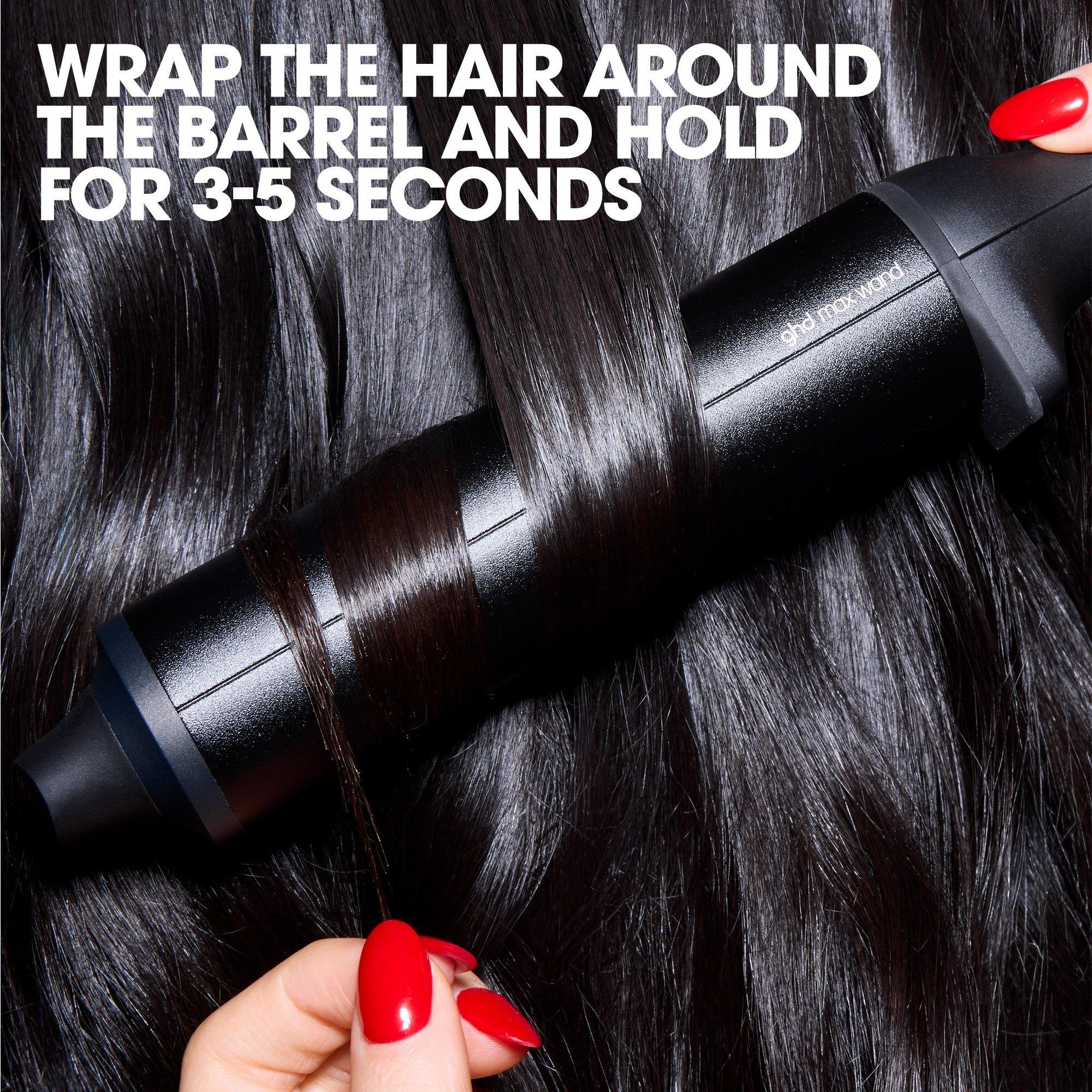 Ghd's professional Chronos Curve Max wand with a 1.5" barrel that uses curl-responsive technology for up to 3x faster curling & HD results that last all day. Recommended for shiny, loose waves.
