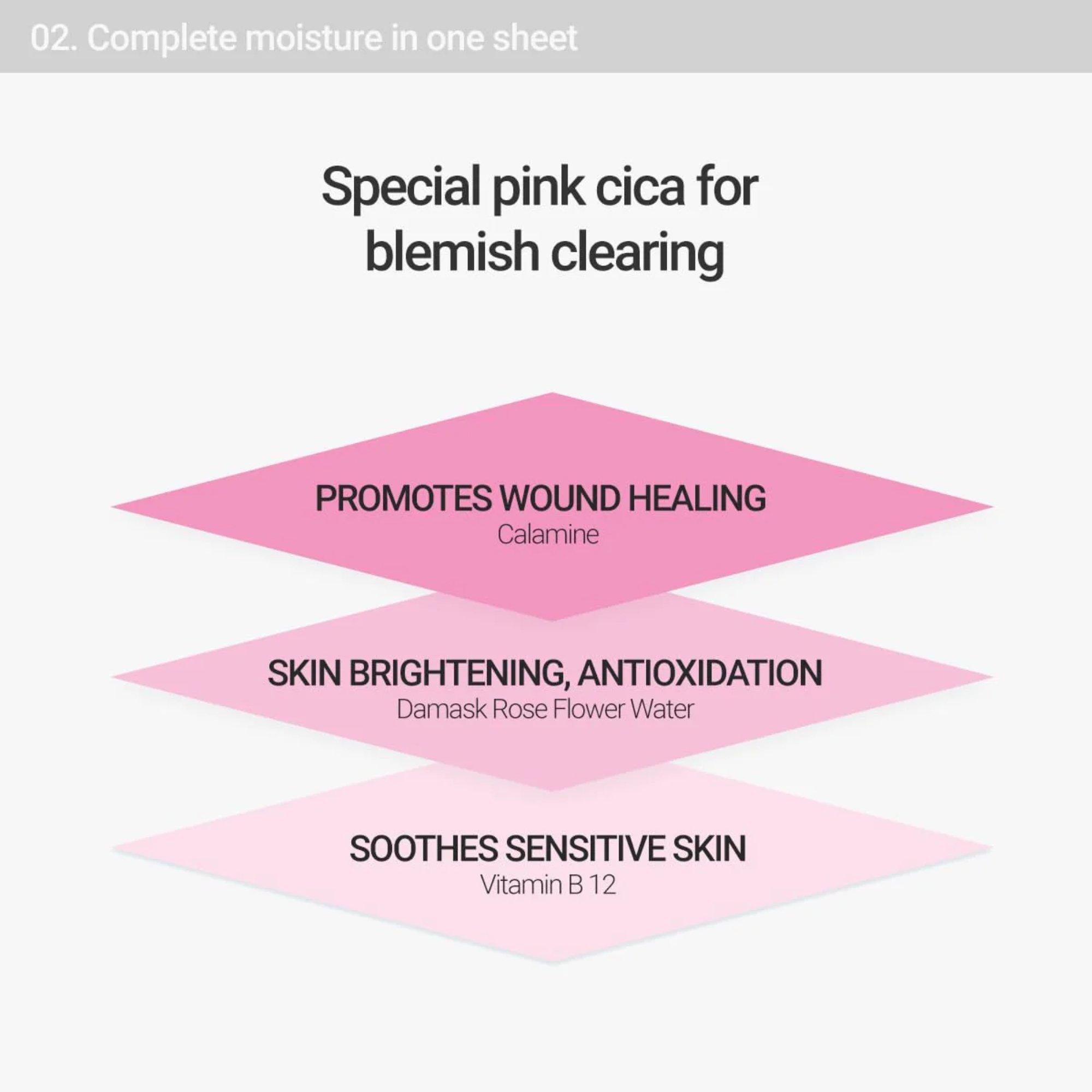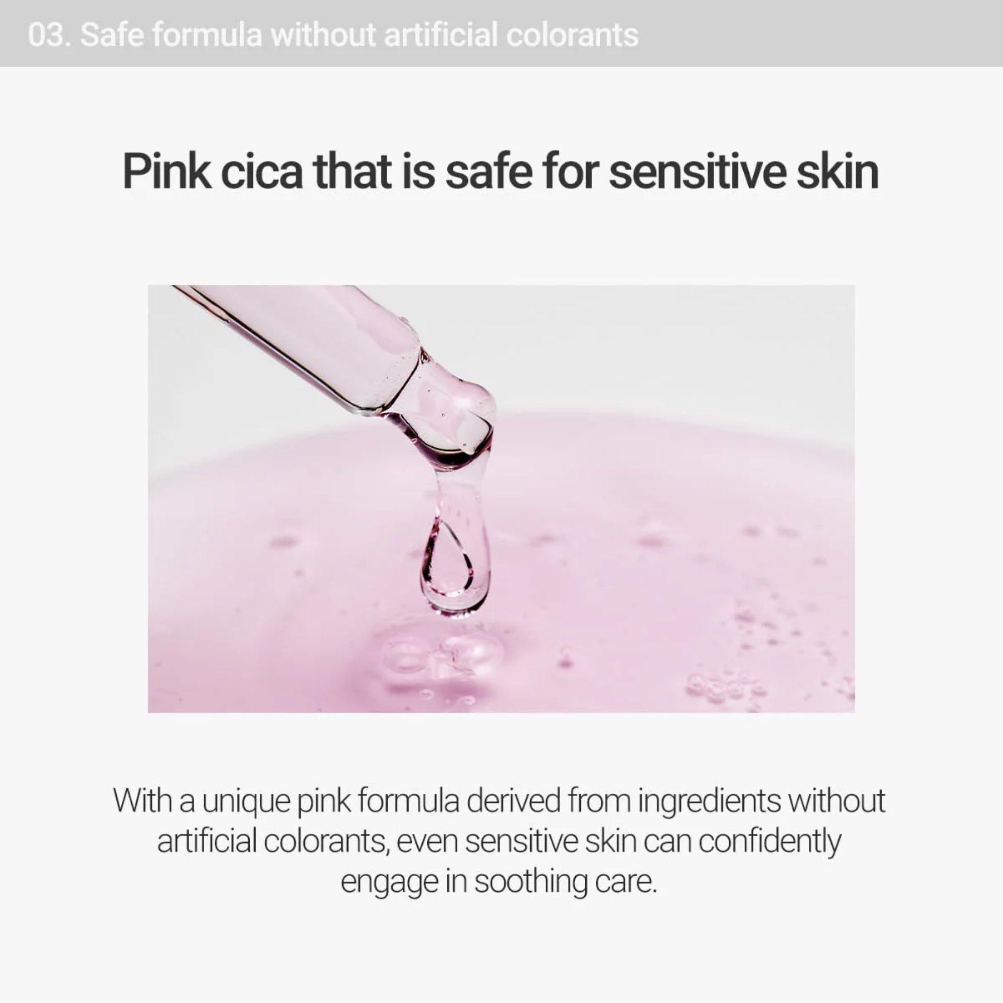 • Pink Cica: A unique pink formula derived from ingredients without artificial colorants; even sensitive skin can engage in soothing care.