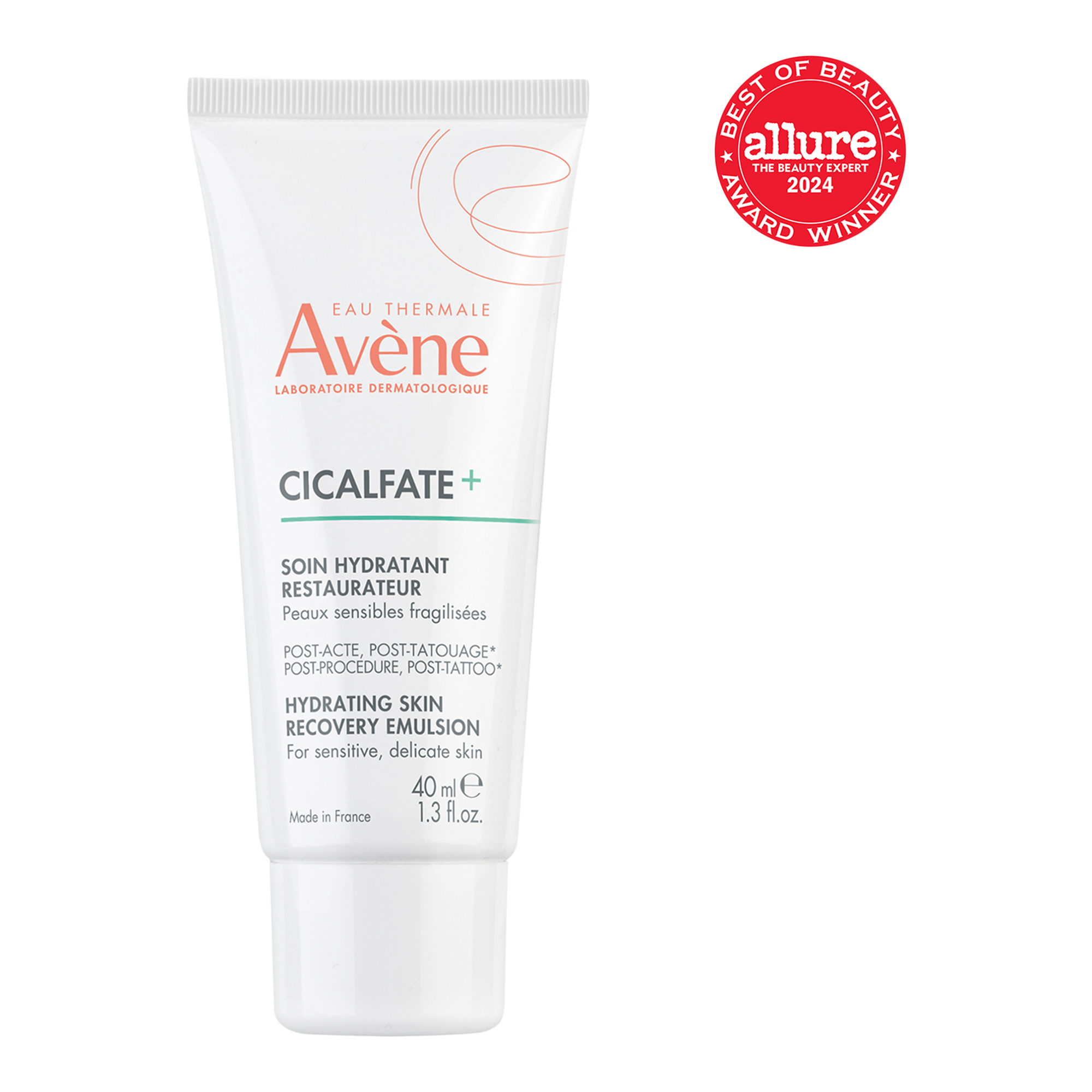 Avène's Cicalfate+ Hydrating Skin Recovery Emulsion is a lightweight, soothing recovery emulsion restores skin and provides 24 hours of hydration. Suitable for use post-superficial, dermatological procedures and post-tattoo.
