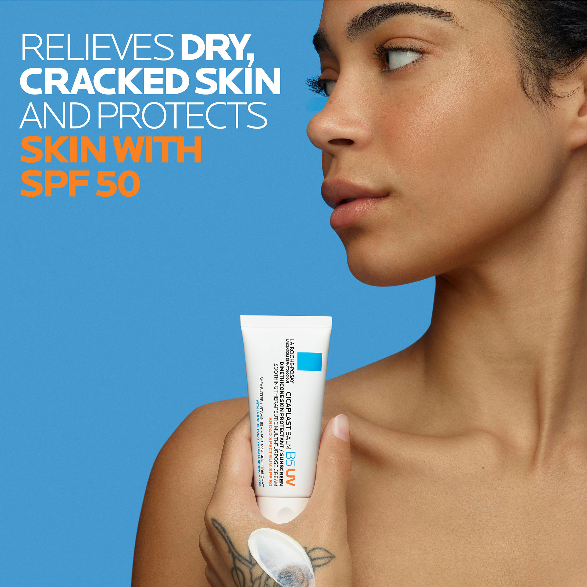 La Roche-Posay Cicaplast Balm B5 UV Soothing Therapeutic Multi Purpose Cream with shea butter relieves dry skin and irritation, while helping protect skin exposed to the sun.