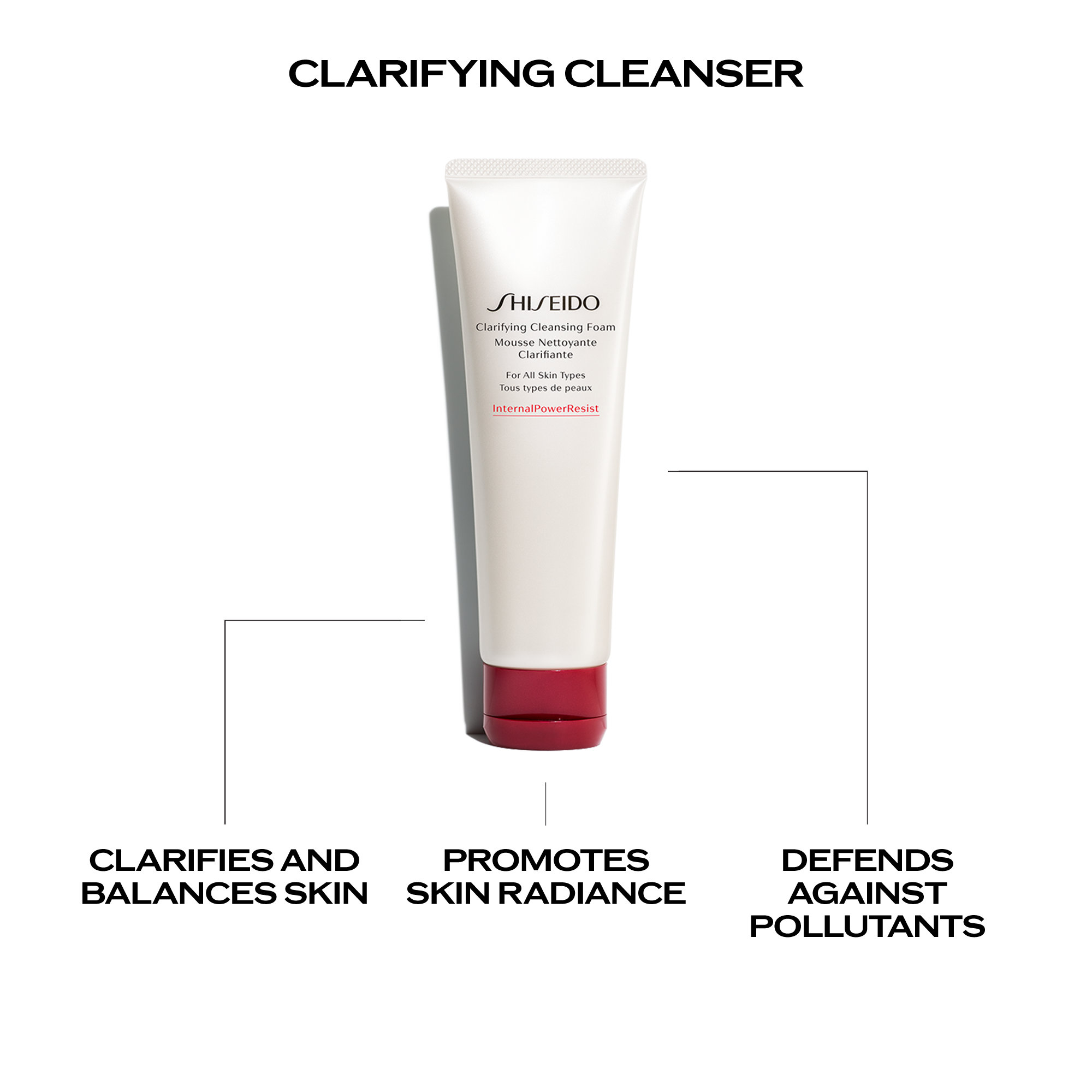 Whisk away makeup, impurities and skin-dulling surface cells with Shiseido's Clarifying Cleansing Foam. A White Clay foaming facial cleanser that reveal smooth, radiant results.