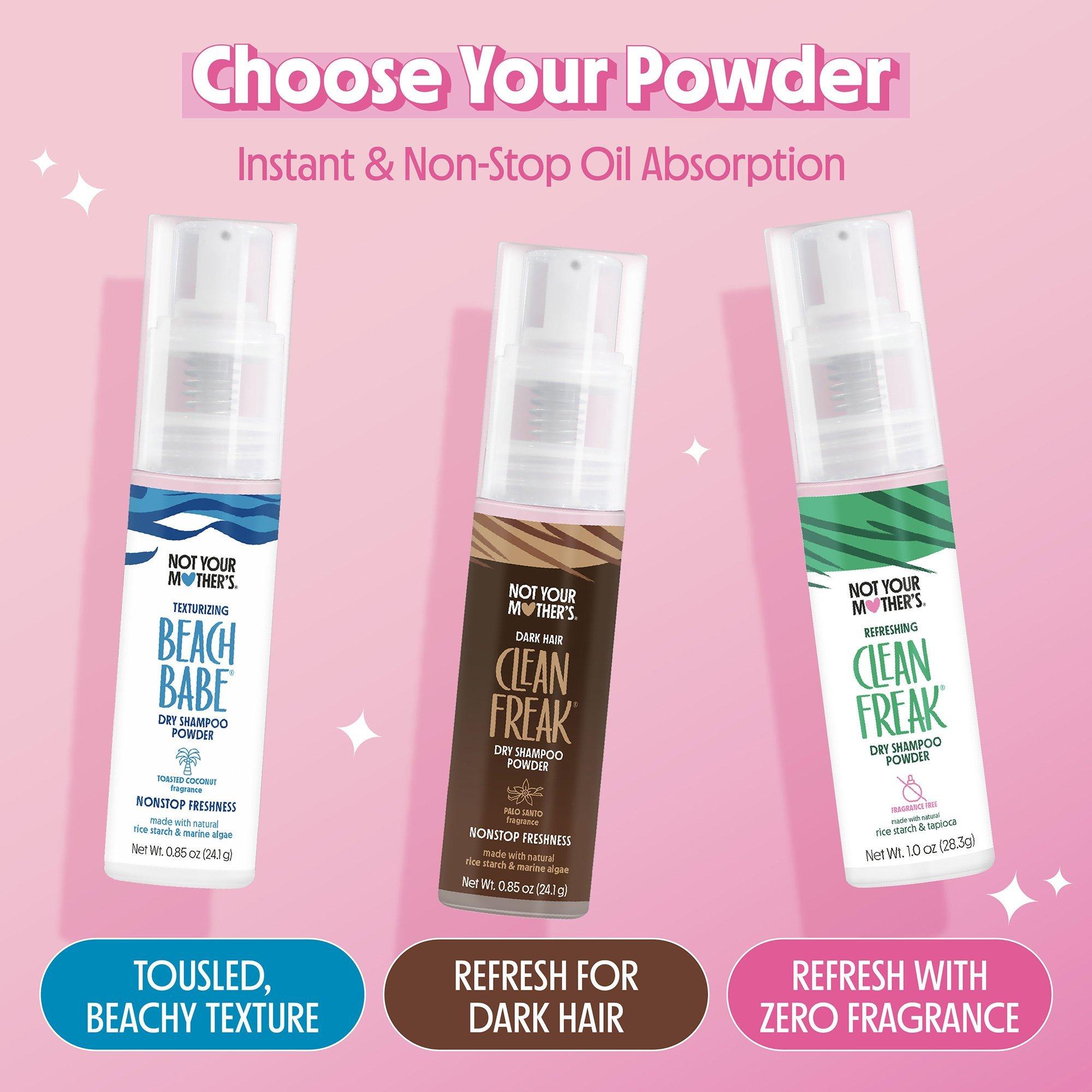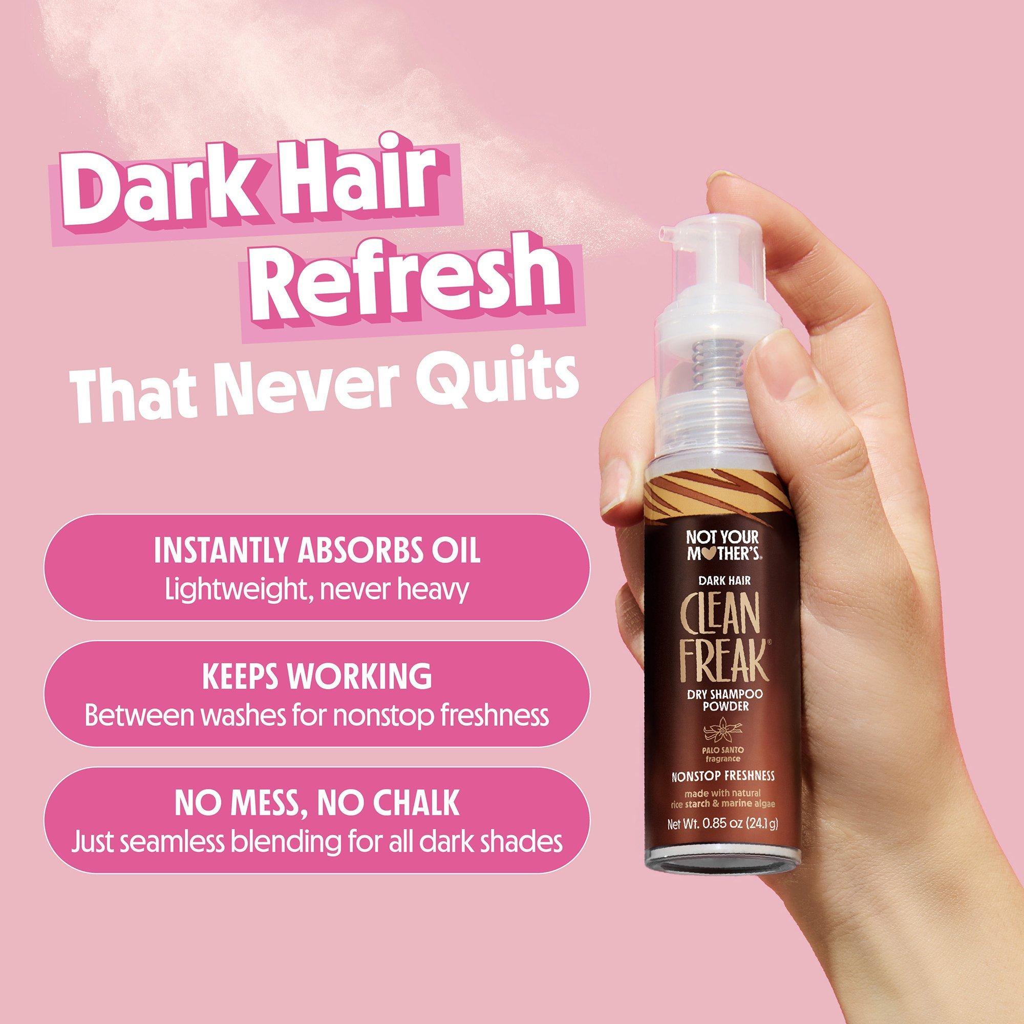 This tinted, non-aerosol dry shampoo effortlessly blends into any shade of dark hair to instantly absorb oil for a refresh that leaves locks soft and clean. Not Your Mother's Clean Freak Dry Shampoo Dark Hair Powder keeps absorbing oil after you apply too, for even longer-lasting freshness.