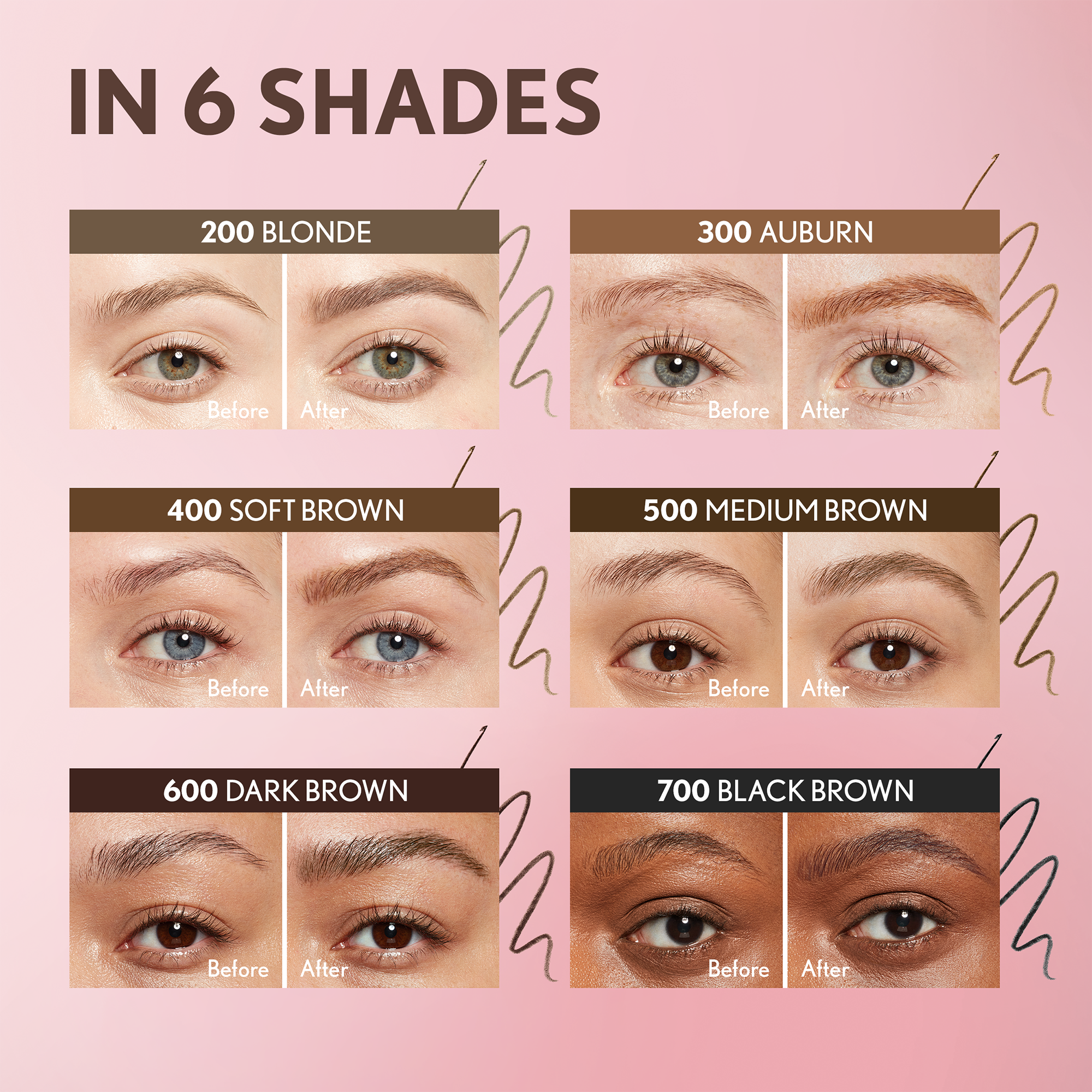 Brush hairs upwards with the spoolie. Fill in with hair-like strokes to define. For a seamless, easy application, twist only a little bit of the tip out. Comb through to soften and style.