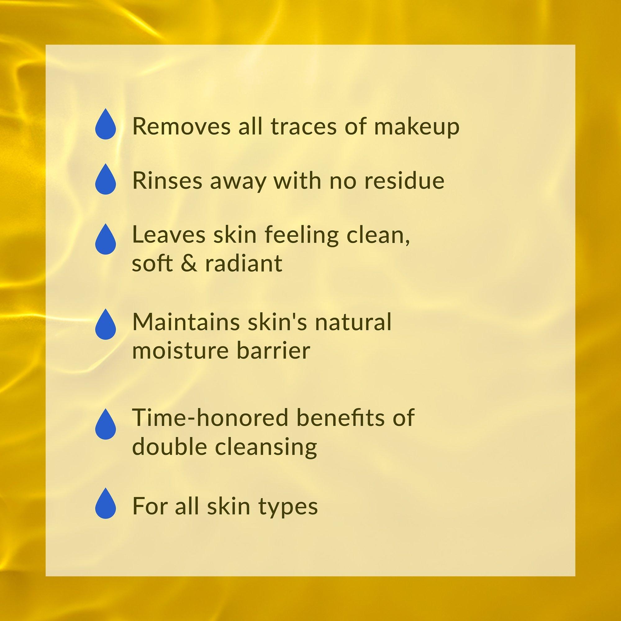 Travel-size, olive-oil based makeup remover and facial cleanser dissolves away dirt, excess oil, and makeup-even waterproof mascara. Skin is left clean, soft and refreshed, never greasy.