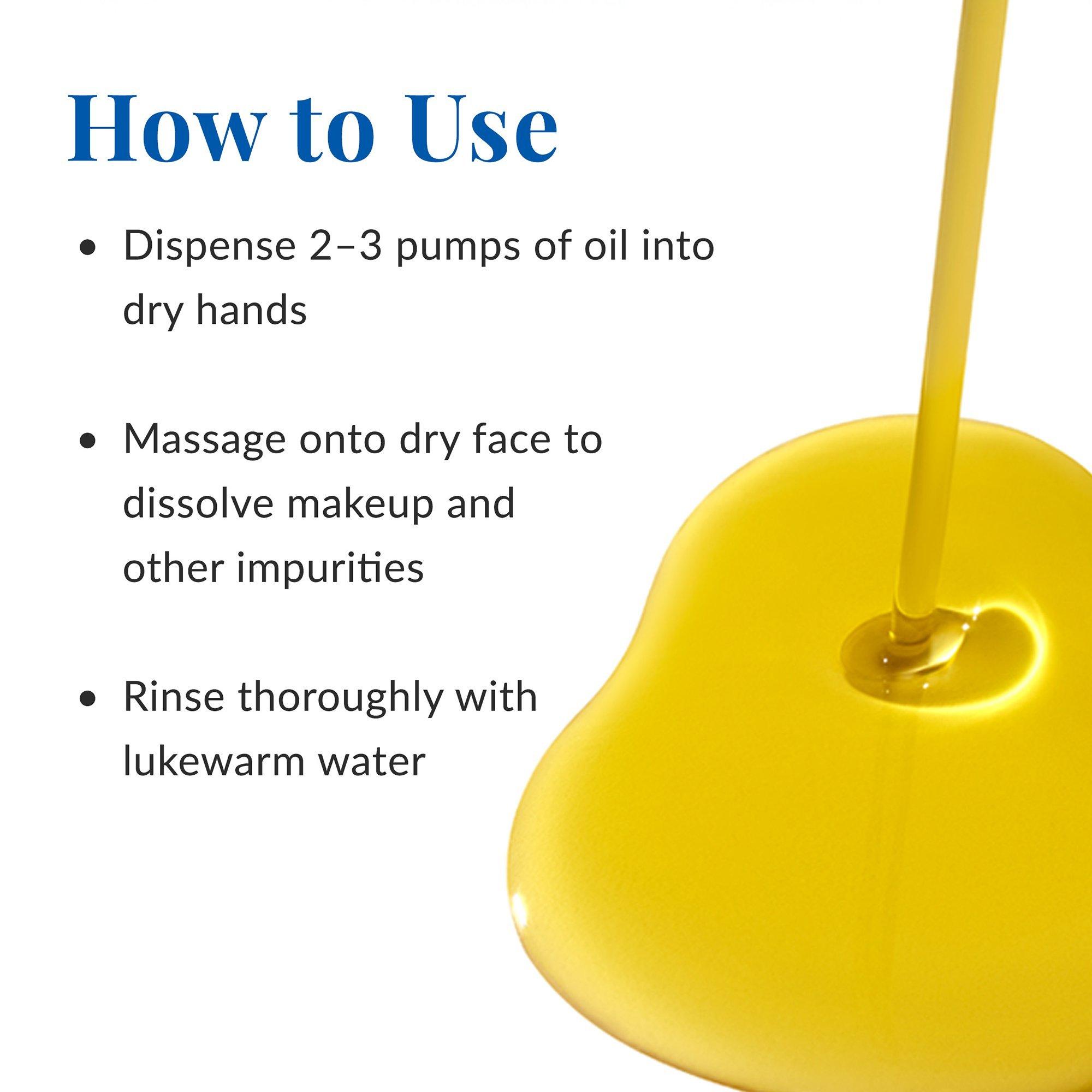 Dispense 2-3 pumps into dry hands. Massage onto dry face to dissolve makeup and other impurities. Rinse thoroughly with lukewarm water.