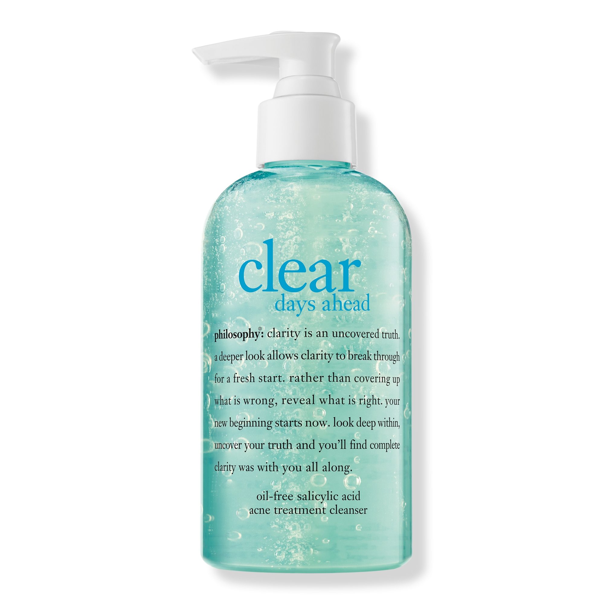 Clear Days Ahead Oil-Free Salicylic Acid Acne Treatment Cleanser by Philosophy deeply cleanses and helps reduce acne-causing bacteria to promote clearer skin.