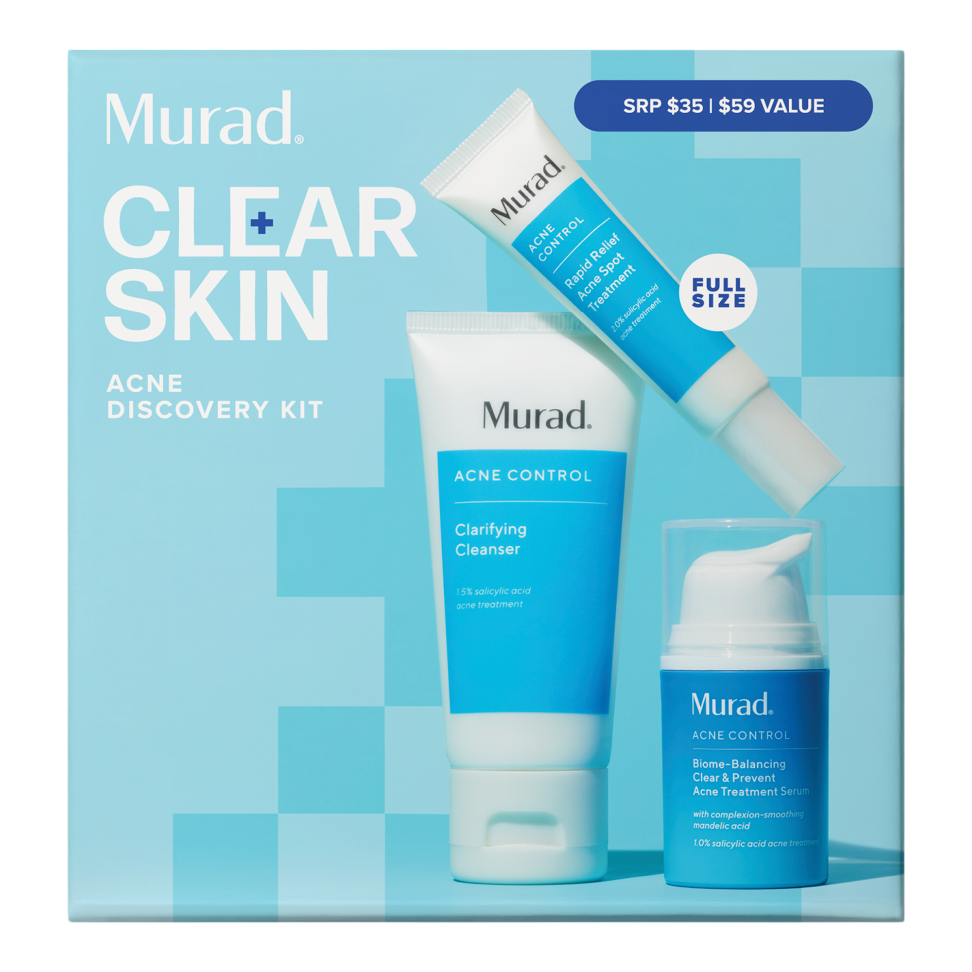 Murad's Clear Skin Acne Discovery Kit includes 3 steps to clear breakouts, purge pores, and control oil for a clearer, healthier-looking complexion.