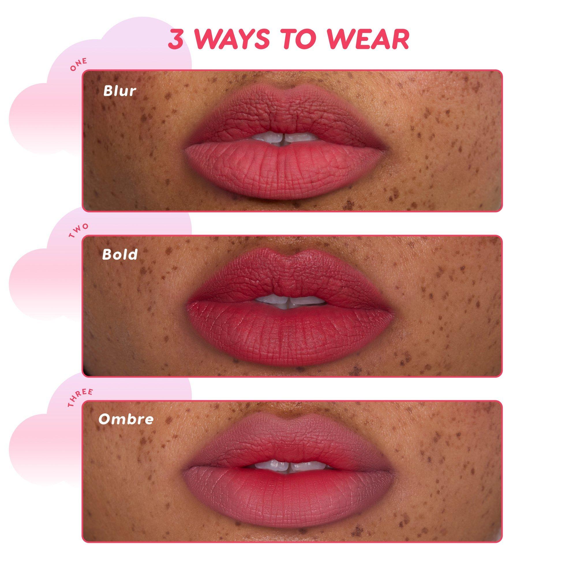 Using the doe-foot applicator, dot a small amount onto the center of lips. A little goes a long way! Apply lightly for soft, hazy color. Gently blend outward with fingertips for an ultra-diffused finish.