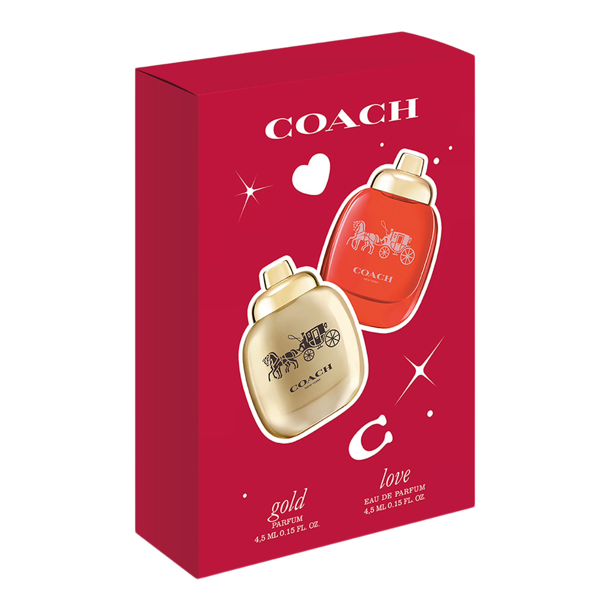 Experience Coach Fragrances with this chic gift set including a 0.15 fl. oz. Coach Love Eau de Parfum Deluxe Mini and 0.15 fl. oz. Coach Gold Parfum Deluxe Mini.