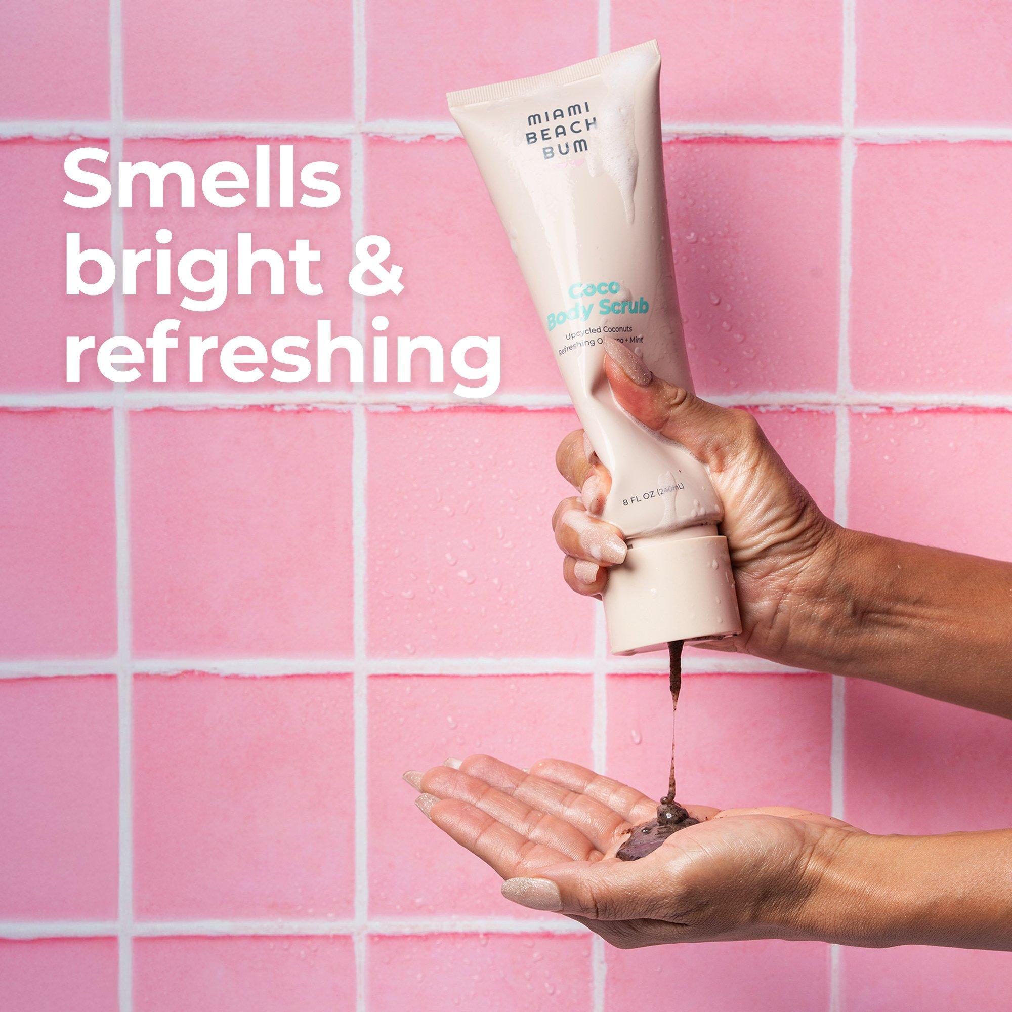 Miami Beach Bum, Coco Body Scrub polishes away dead skin, breakouts, and irritation with upcycled coconut shells, while oregano soothes and reveals silky, smooth skin all over. Enjoy the refreshing spa-inspired plant-scent.