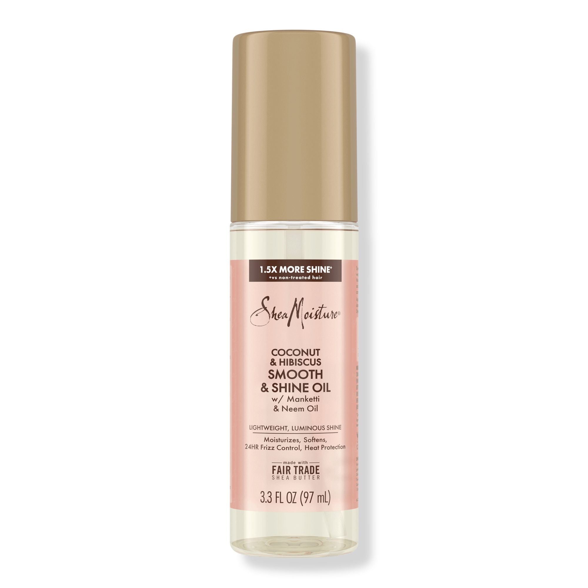 Coconut & Hibiscus Smooth & Shine Oil: Experience healthier-looking and 1.5X shinier hair without weighing it down. This multi-benefit formula, blended with Manketti Oil, adds 4X more moisture with 24-Hour Frizz and Humidity Control. When used before heat styling, this oil can help reduce breakage.