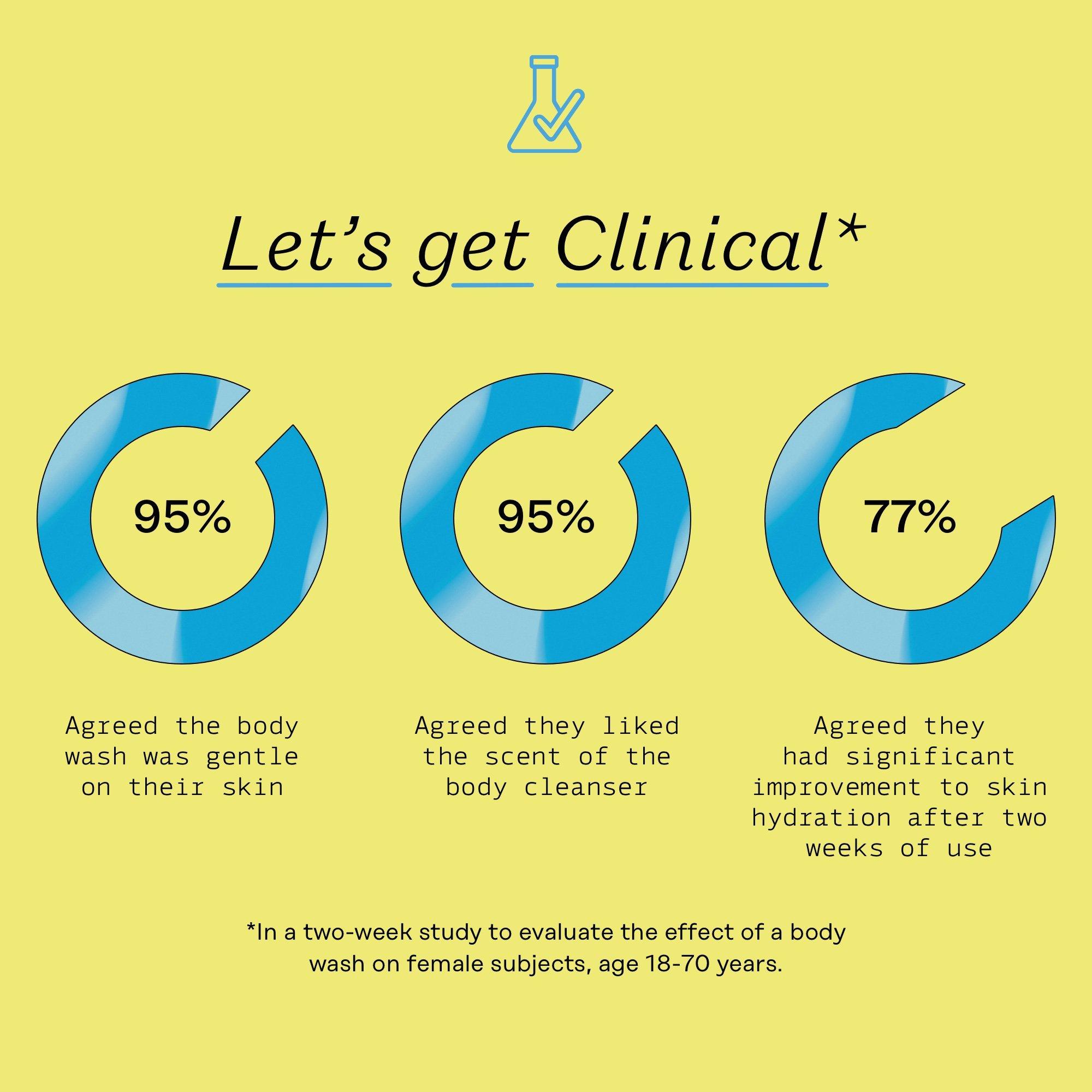Squeeze the desired amount of body cleanser from the bottle onto hands, washcloth, or loofah. Lather, wash and rinse. Repeat daily for superior skin hydration.