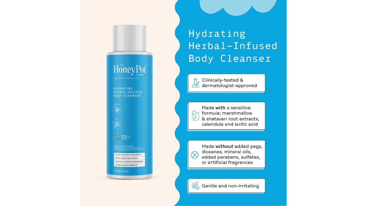 The Honey Pot's Coconut Shea Hydrating Body Cleanser is designed to match the pH balance of your body and provides significant skin hydration after use.