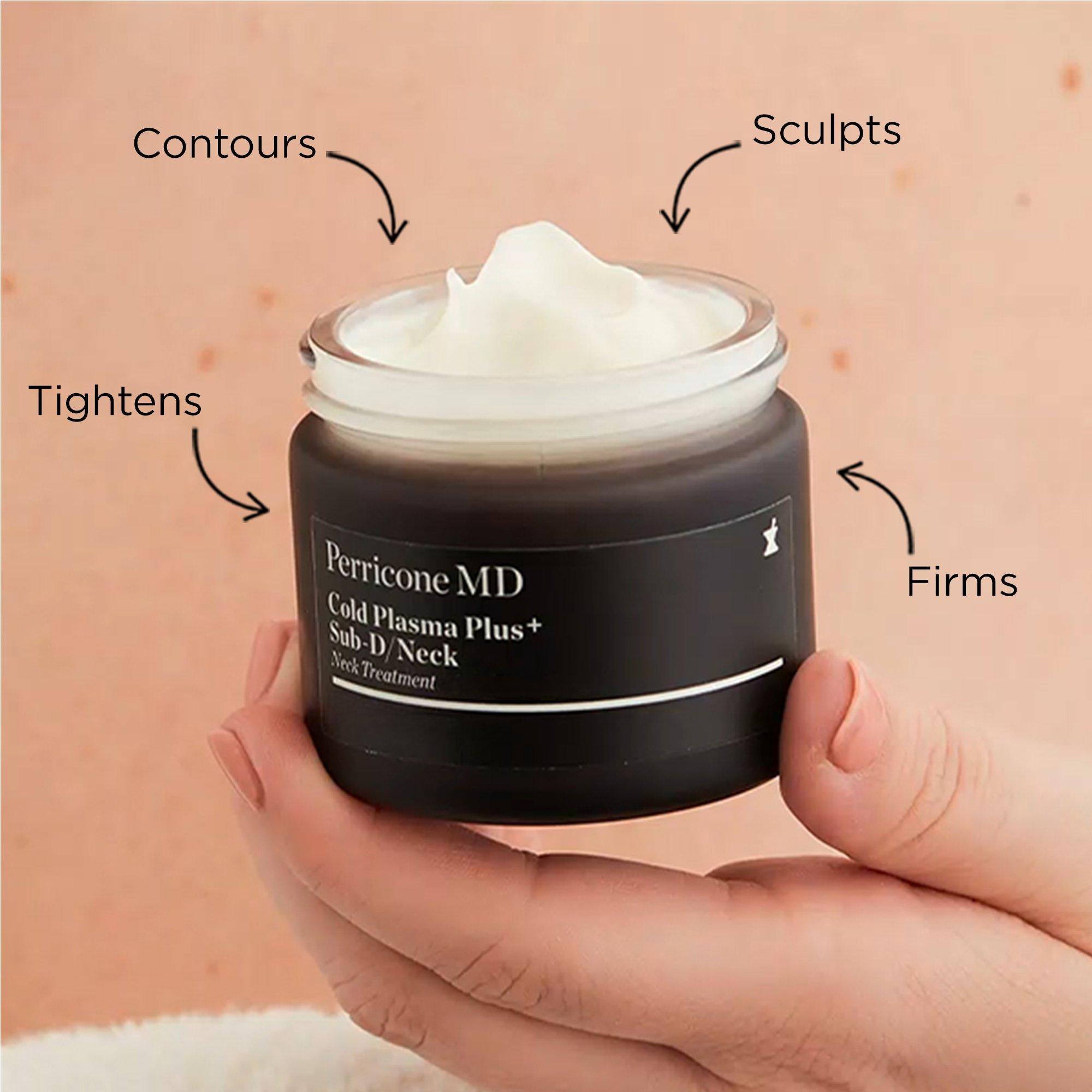 The Perricone MD Cold Plasma Plus+ Sub-D Neck Duo promotes the most visible signs of a youthful-looking neck and the appearance of a firm, sculpted jawline.