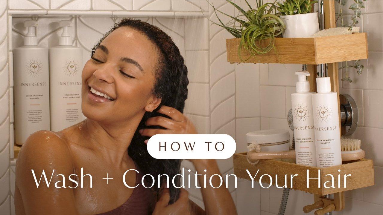 Innersense Organic Beauty's Color Awakening Hairbath is a gentle shampoo for colored and medium textured hair that preserves vibrance and boosts radiance.
