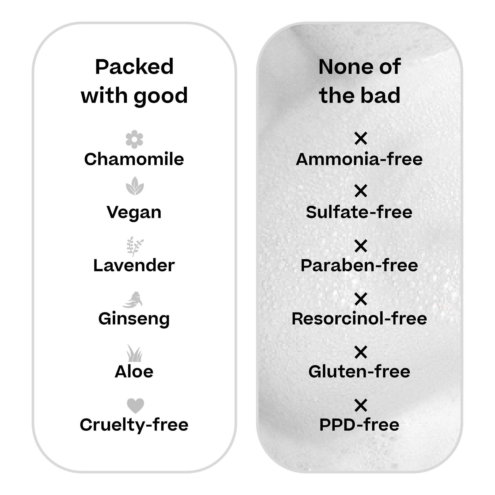 Pump the foam into your hands and fully lather into DRY hair. Start with the bottom section of your hair and fully saturate the foam from ends up to your roots. Repeat as necessary to ensure even coverage and to avoid patchiness. Use the entire bottle of foam for full hair coverage. Relax for 30 minutes and allow your hair color to fully set. Rinse out your hair thoroughly with water, and then use shampoo and conditioner (like usual).
