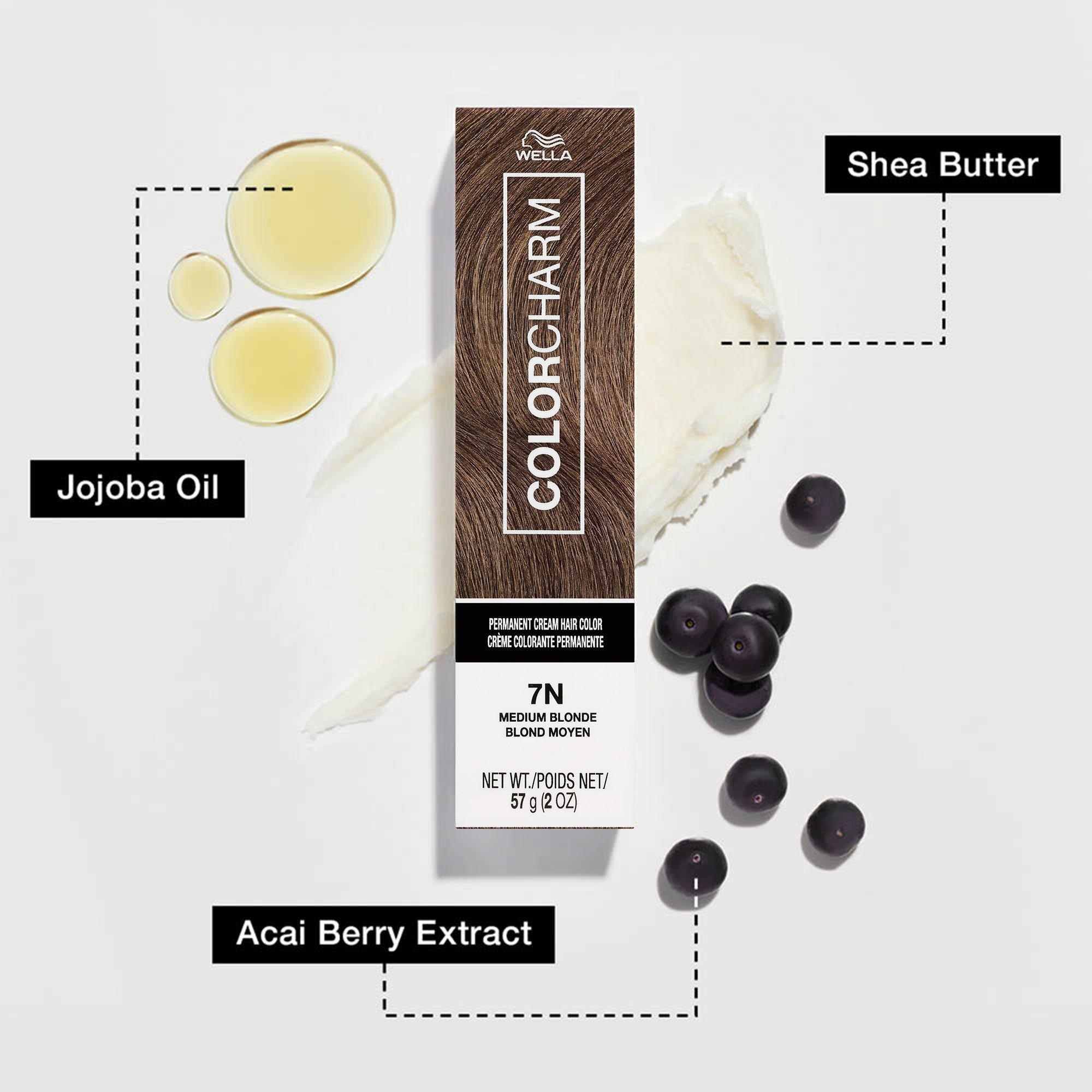 Wella Colorcharm Permanent Cream Hair Color is made with built-in BondGuard that helps protect bonds, combat damage and reduce breakage. 5 nourishing lipids blend provides moisturization for soft and smooth hair. This formula will leave hair conditioned full of shine and cover up to 100% gray hair.
