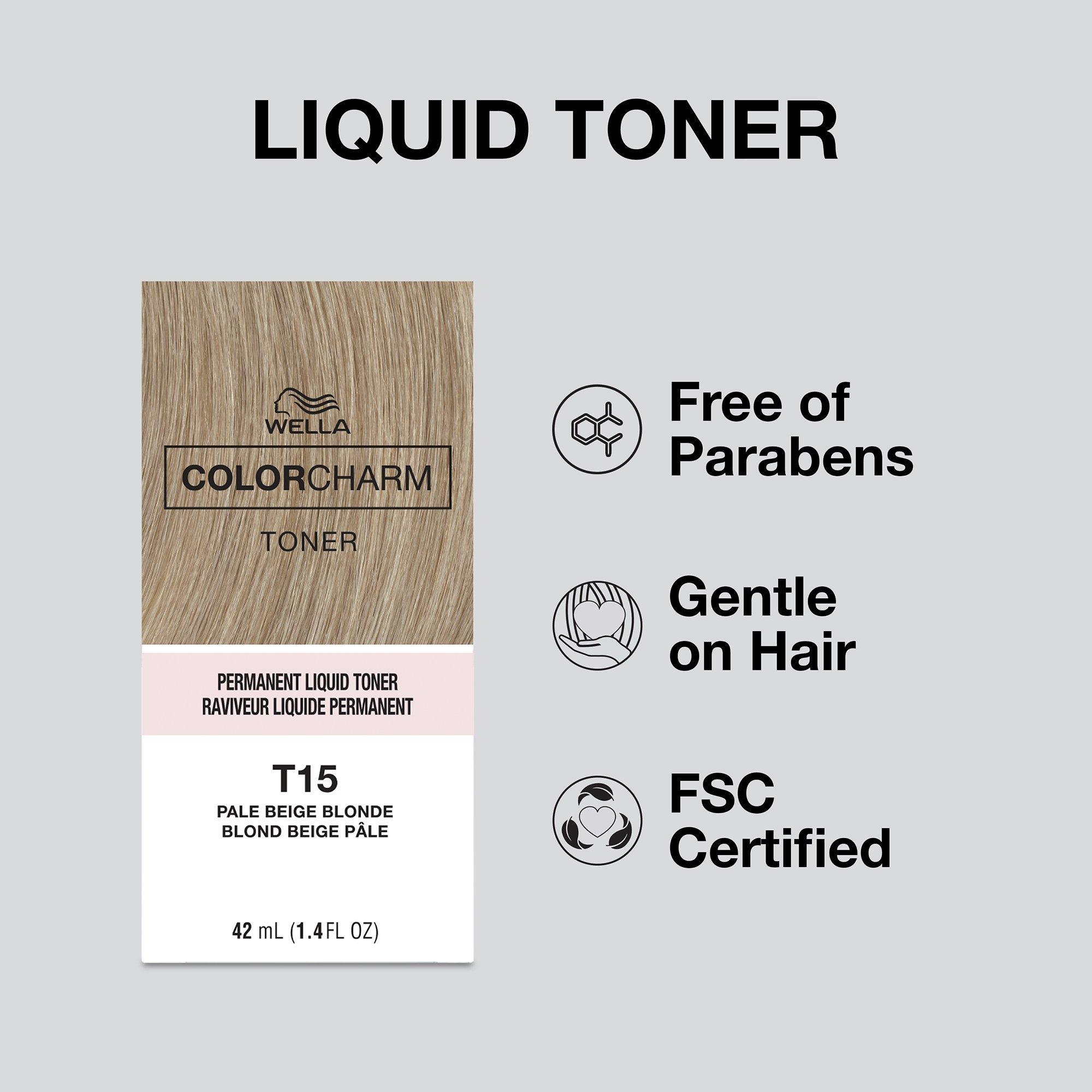 Wella Colorcharm Liquid Hair Toner is ideal to create pure double-process blonde hair color results. This toner removes remaining "brass" for perfect blondes every time.