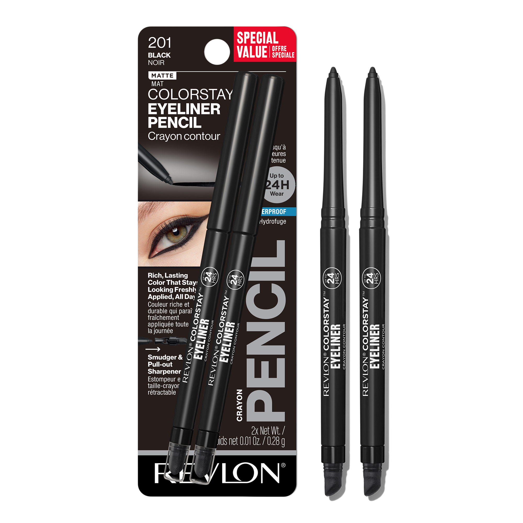 Revlon ColorStay Eyeliner Pencil glides on easily adding drama and definition to your eyes and wears up to hours. Waterproof formula won't smear, smudge or fade.