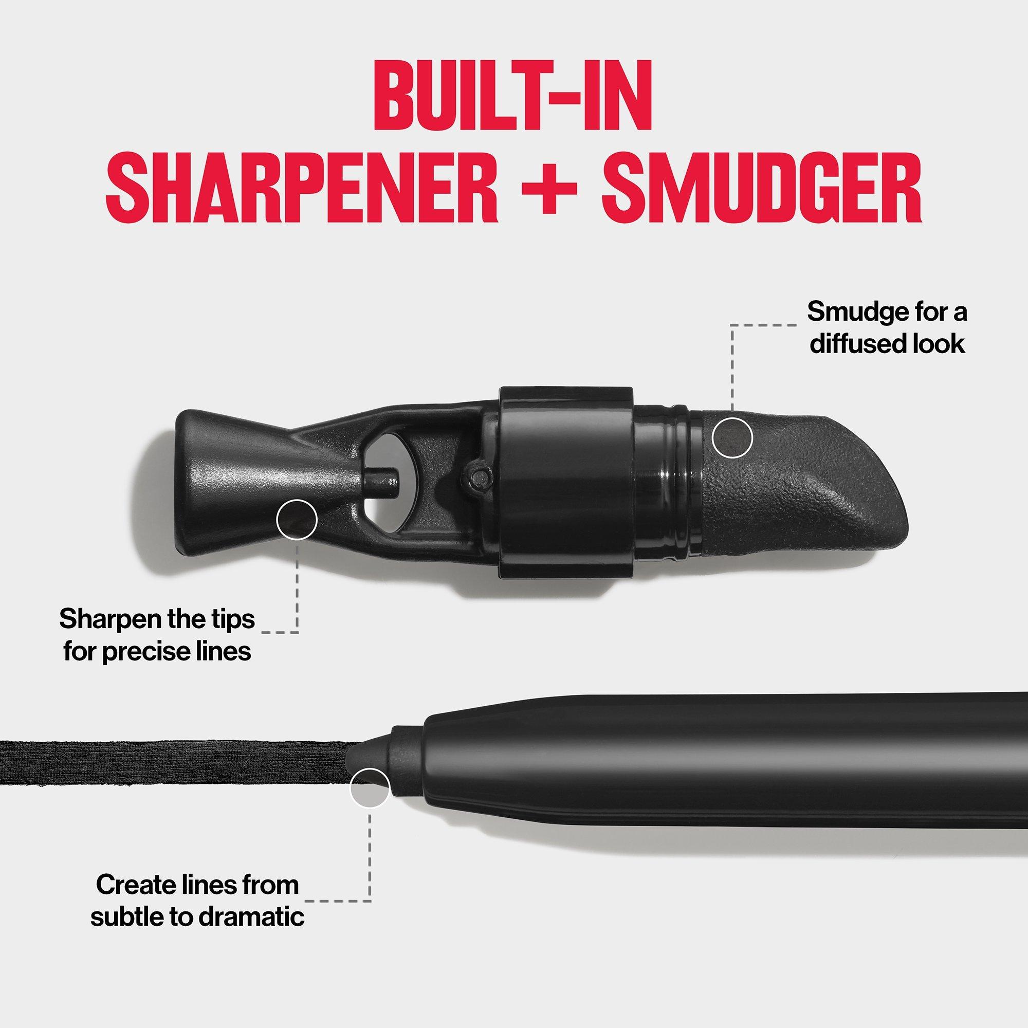 Twist the body of our waterproof eyeliner pencil until you have enough color at the tip to work with. Glide it along your lash line, starting from the inner corner of your eye and working outward. Go intense and dramatic or create a softer, smoky look by using the smudger tool right after applying. Keep the pencil sharp with the built-in sharpener.