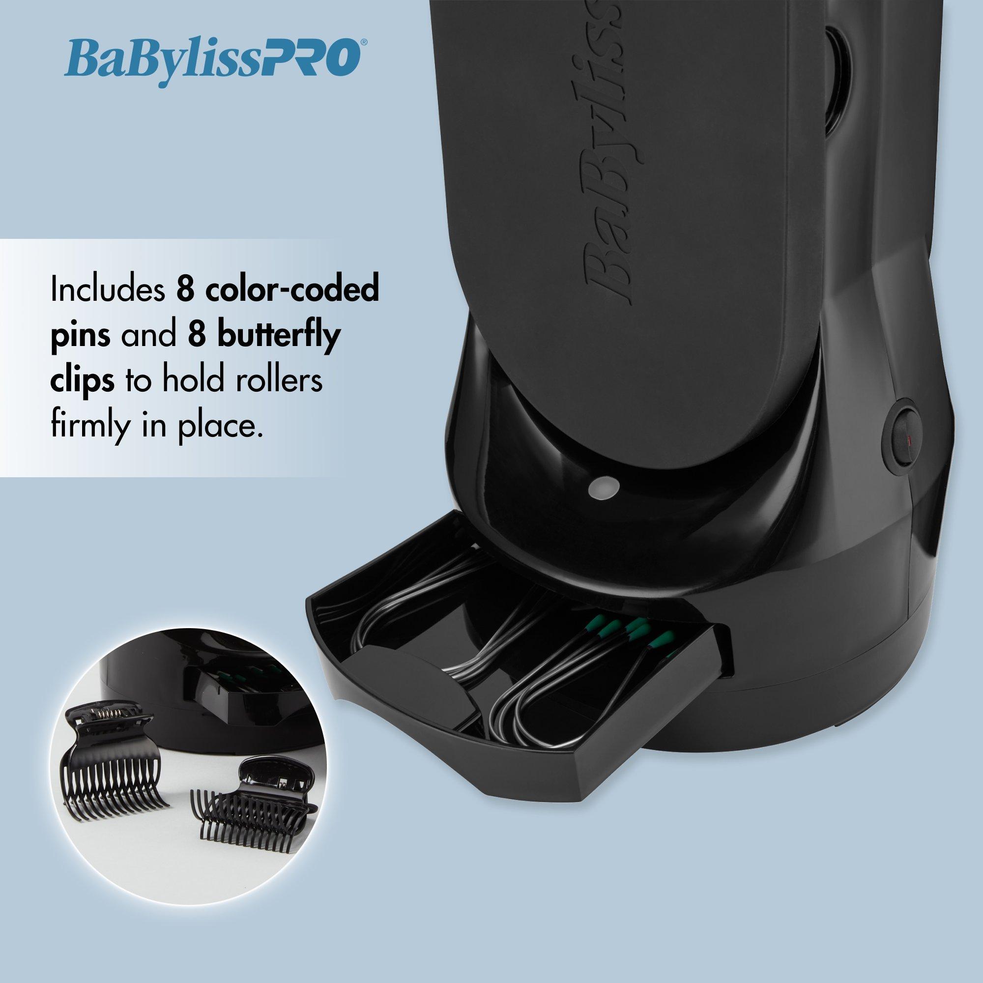 BaBylissPRO Nano TitaniumTM Compact 8-Piece Standing Hot Rollers innovative vertical design takes up less space and makes rollers easily accessible.