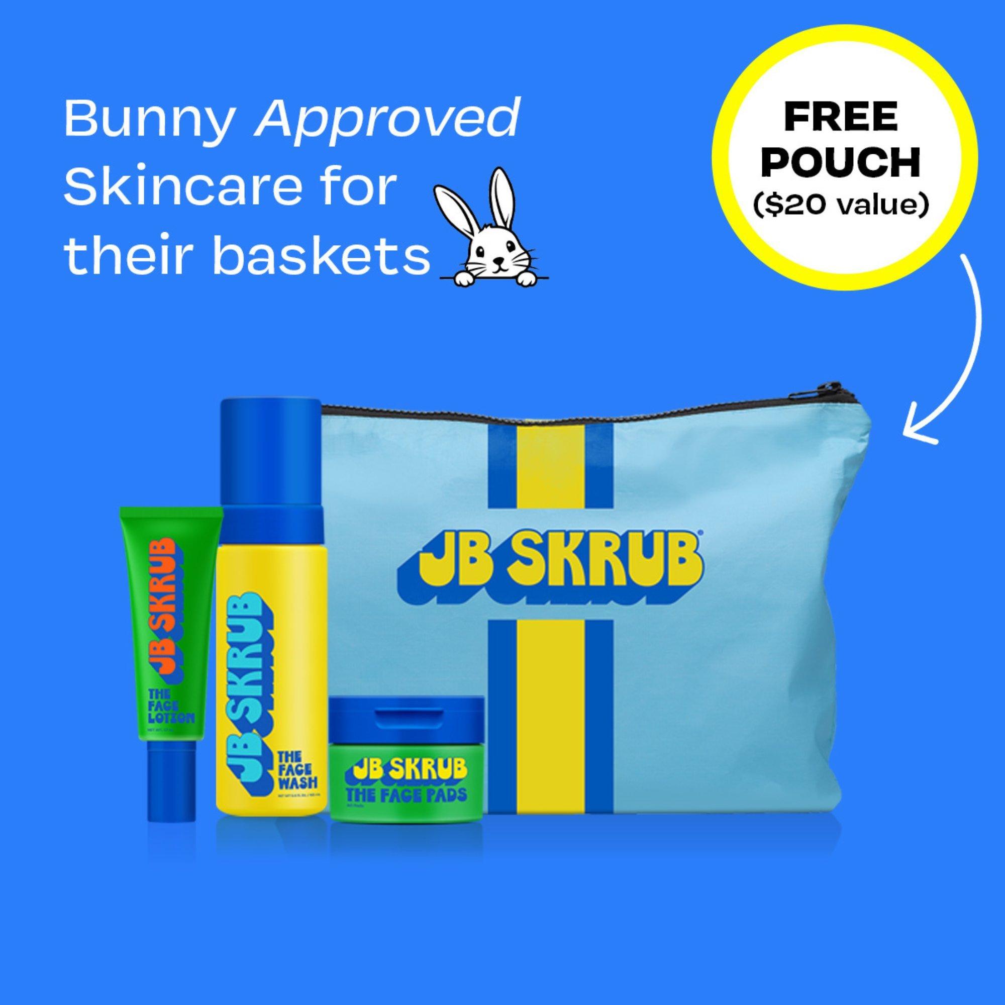 Great for Easter Baskets, Camp & Gifting! JB SKRUB’s Face Set - a 3-step teen and tween skincare system built for boy's and girl's young skin. This dermatologist-approved set has everything for a simple and effective routine PLUS a free travel pouch for a limited time only.