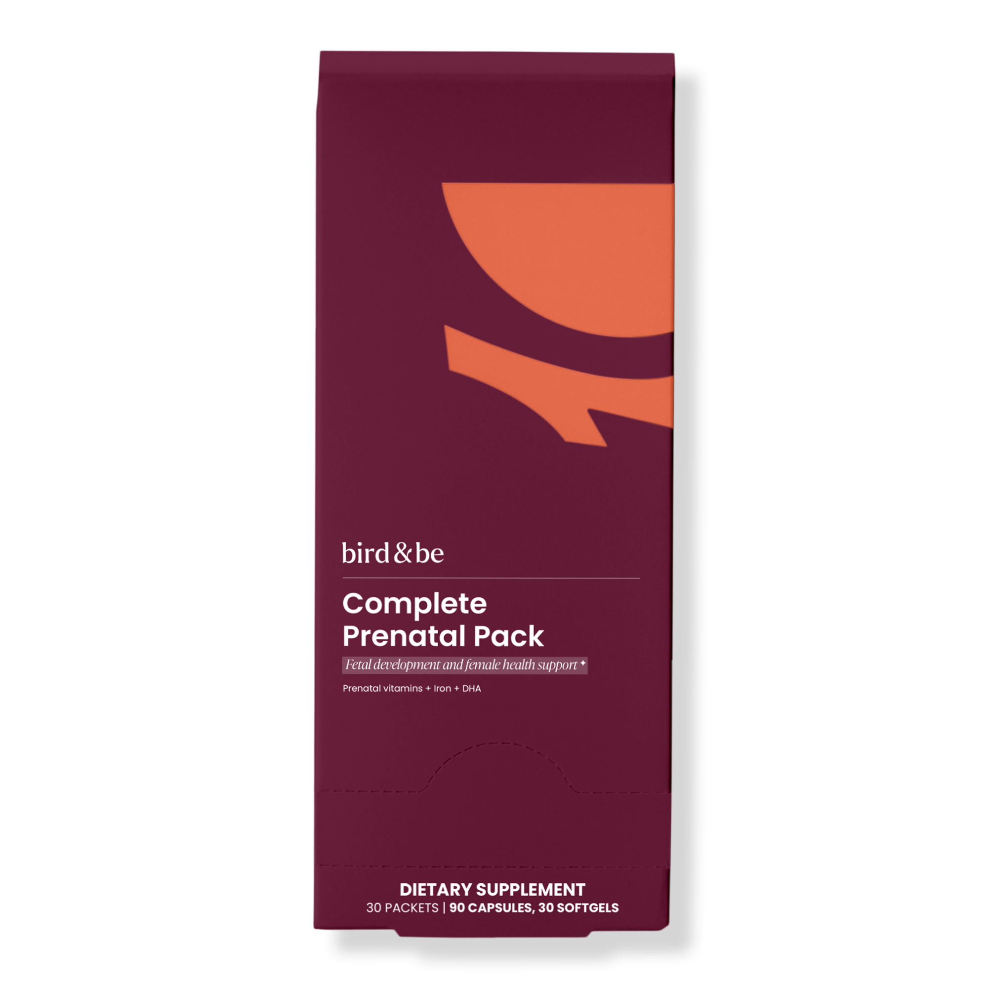 Bird&Be's Complete Prenatal Pack delivers clinical doses of 24 nutrients—including choline, iron, DHA, folic acid, and 5-MTHF—to support brain, spine, and overall fetal development with bioavailable, vegan ingredients and no unnecessary fillers.
