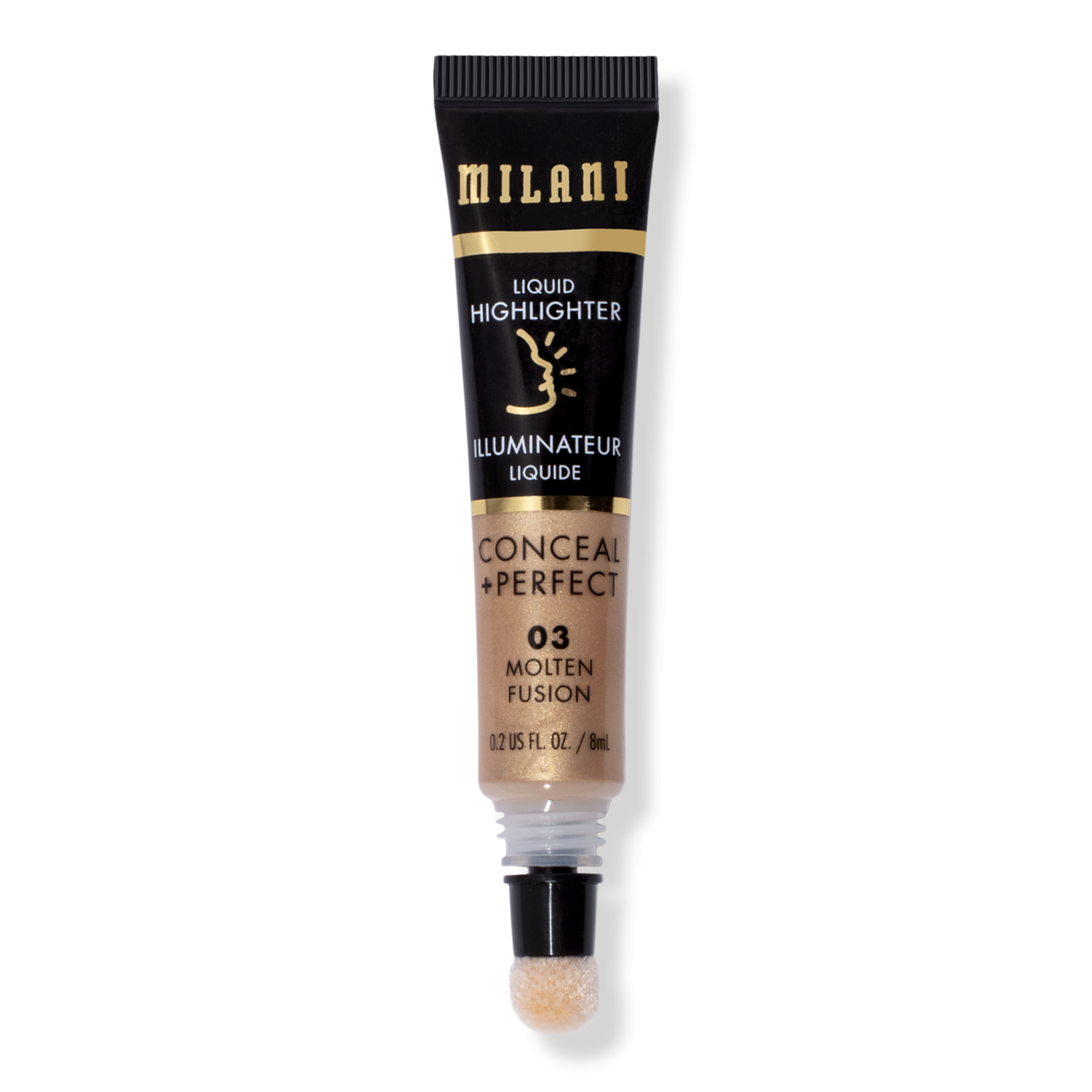 Milani Conceal + Perfect Liquid Highlighter creates an instant luminous finish with finely milled pearl for an effortless candlelit glow.
