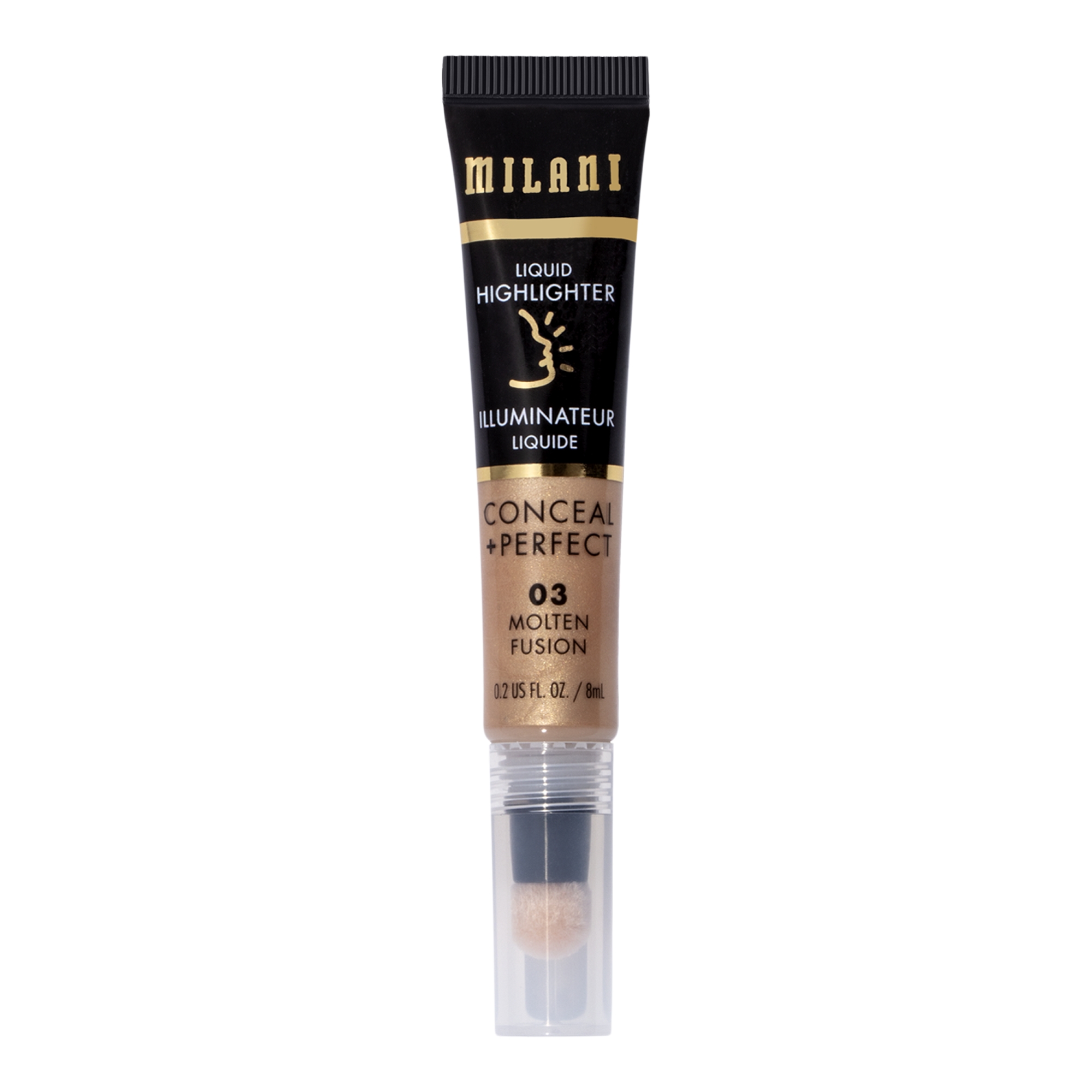 Milani Conceal + Perfect Liquid Highlighter creates an instant luminous finish with finely milled pearl for an effortless candlelit glow.